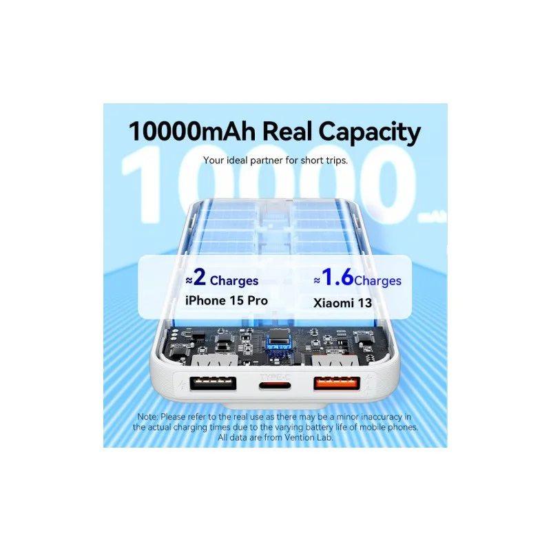Ёмкость 10000 мАч достаточна для 1–2 полных зарядок большинства смартфонов, при этом сам Power Bank остаётся лёгким и компактным — легко помещается в сумке, рюкзаке или даже в кармане.