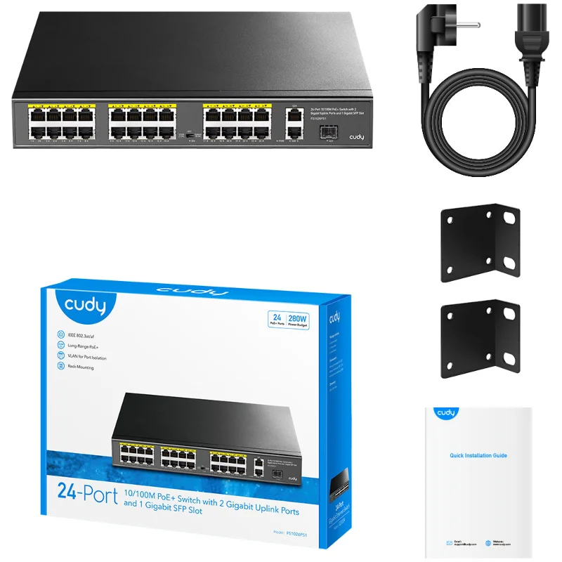 Главное преимущество Cudy FS1026PS1 — сочетание высокой мощности PoE, гибкости подключения и простоты эксплуатации. Устройство не требует сложной настройки: достаточно подключить питание и сетевые кабели — и сеть готова к работе. Прочный металлический корпус, возможность монтажа в стойку и большой запас по мощности делают этот коммутатор отличным выбором для масштабируемых проектов, где важны надёжность, безопасность и удобство обслуживания