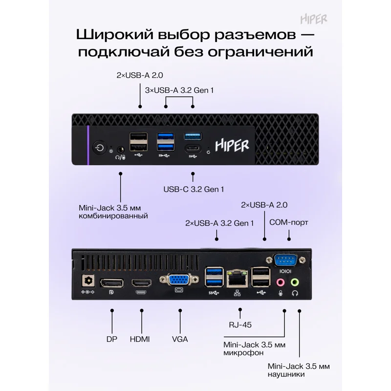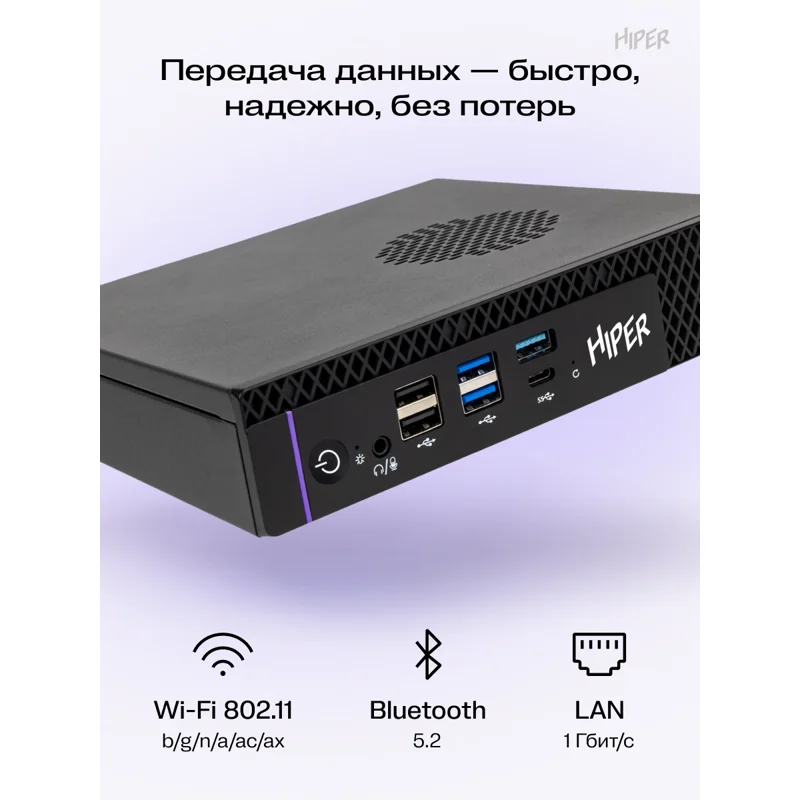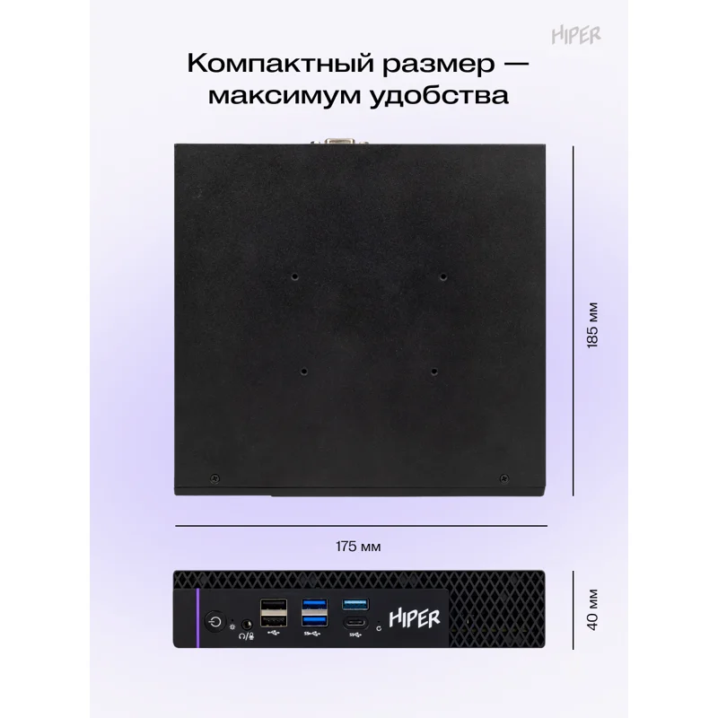 HIPER FACTUM FT20 — это мини-ПК, предназначенный для выполнения как повседневных, так и более требовательных задач. Он оснащен процессором Intel Core i5 14400 с тактовой частотой 2.5 GHz, 16 ГБ оперативной памяти и SSD на 512 ГБ. Устройство поддерживает беспроводные технологии Bluetooth и Wi-Fi, работает под управлением Windows 11 Pro и имеет компактный металлический корпус весом всего 1.3 кг. В комплекте также идет блок питания на 120 Вт и адаптер VESA для крепления на 75x75 и 100x100.