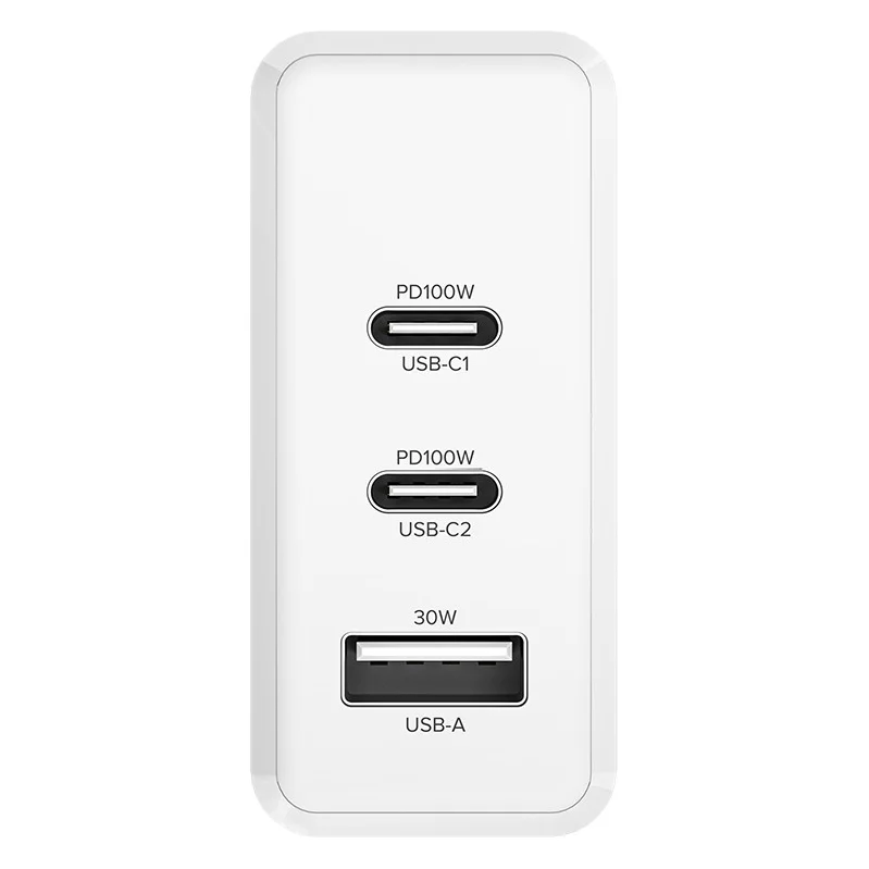 Зарядное устройство мощностью 100W на 3 USB порта - это сетевой адаптер нового поколения для сверхбыстрой зарядки ноутбуков, планшетов, мобильных устройств, игровых консолей и других гаджетов, с разъемами USB-C и USB-A.