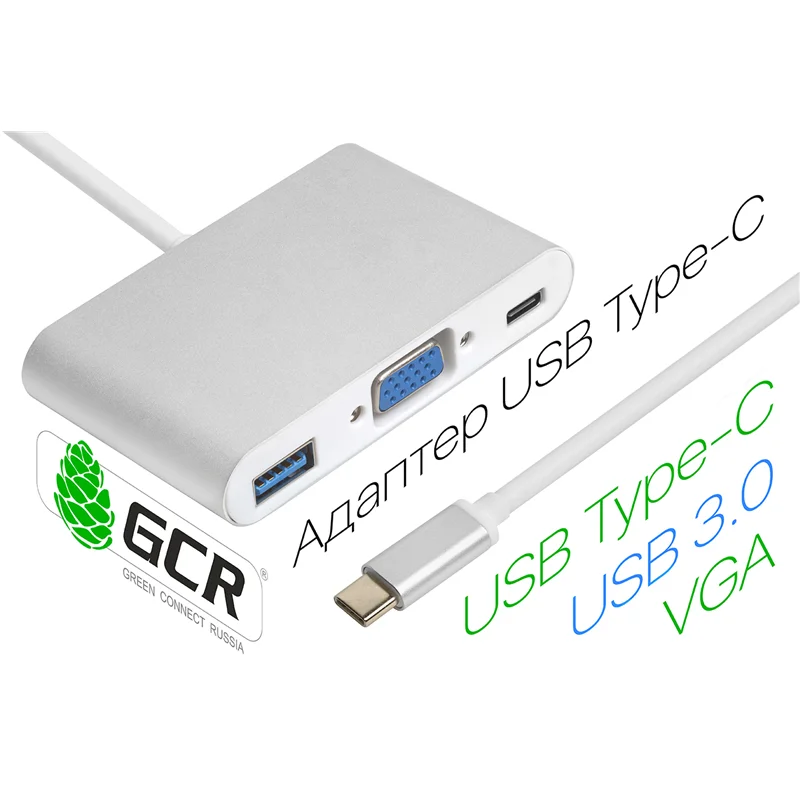 Данный хаб подключается в ваше устройство через порт USB Type C, и расширяет возможности устройства. Данное устройство поддерживает технологию Plug & Play, для его работы не требуется установка драйверов или дополнительного ПО, просто подключается и работает. У этого хаба есть несколько различных портов, все они могут работать одновременно. VGA - Вы можете подключить любой монитор, телевизор или проектор, наслаждаться яркой и красочной картинкой во время просмотра фильма или комфортно работать. Type C / AF - 2 порта USB 3.0 для зарядки устройств и быстрой передачи данных или подключения дополнительной периферии. Корпус из Алюминия и PVC пластика не только надежно защищает внутреннее устройство хаба, но и соответствует европейскому стандарту RoHS - это означает, что хаб выполнен из экологичных материалов и совершенно безвреден для здоровья. Благодаря большому кол-ву разъемов хаба, вы можете превратить ваш смартфон, в портативный пк, все что необходимо это подключить монитор, клавиатуру и мышь.