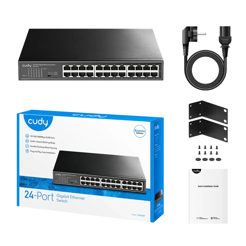 Неуправляемый коммутатор GS1024 - идеальное решение для сборки быстрой и надежной сети с 24 гигабитными портами Ethernet. Он предназначен для использования в малых и средних бизнес-сетях, где требуется высокая пропускная способность и простота установки. Ключевые характеристики: • 24 гигабитных порта Ethernet: Обеспечивают высокую скорость передачи данных для всех подключенных устройств. • Режимы по умолчанию/VLAN/расширения: Позволяют гибко настроить сеть в соответствии с требованиями, например, разделить сеть на отдельные сегменты с помощью VLAN или расширить дальность передачи сигнала до 250 метров в режиме Extend. • Безвентиляторная система охлаждения: Обеспечивает тихую работу и отсутствие дополнительного тепловыделения. • Настольное и стоечное крепление: Позволяет установить коммутатор как на рабочем столе, так и в стойку с помощью кронштейнов.