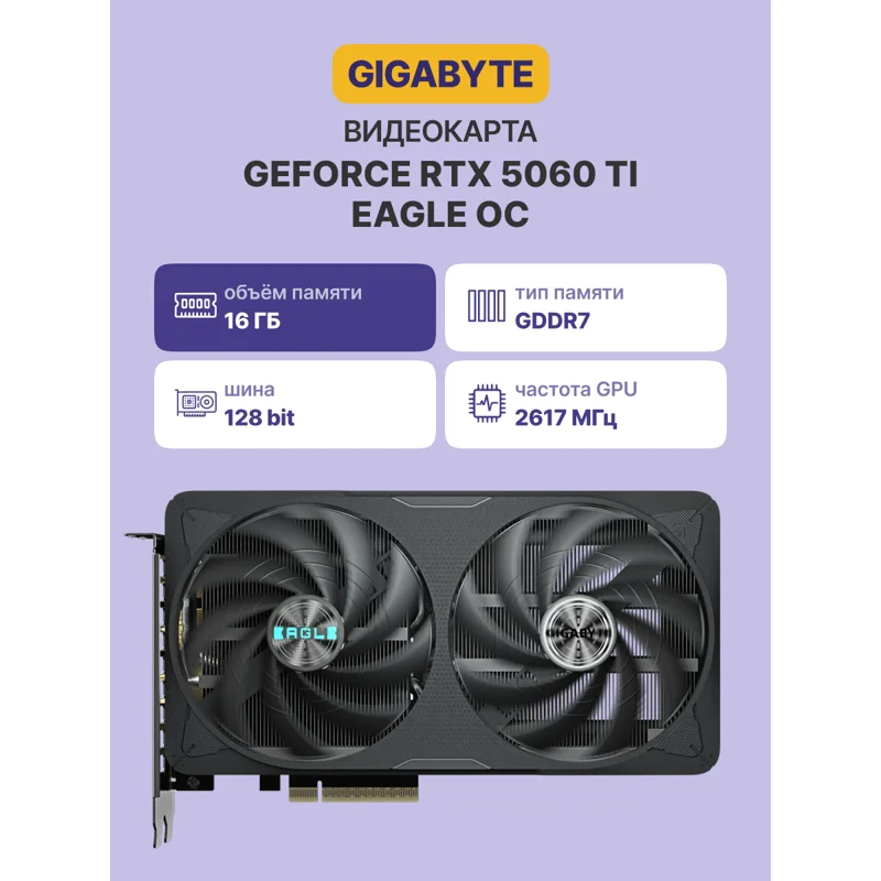 Видеокарта GIGABYTE RTX5060Ti EAGLE OC 16GB//RTX5060Ti, HDMI*1, DP*3, 16G,D7