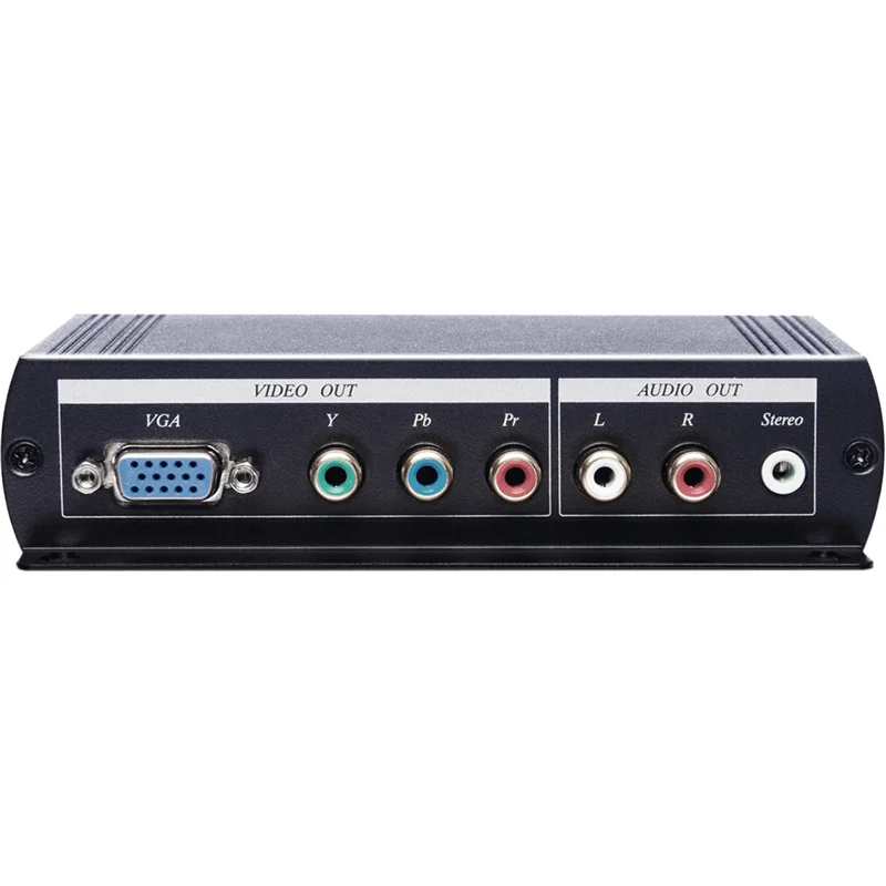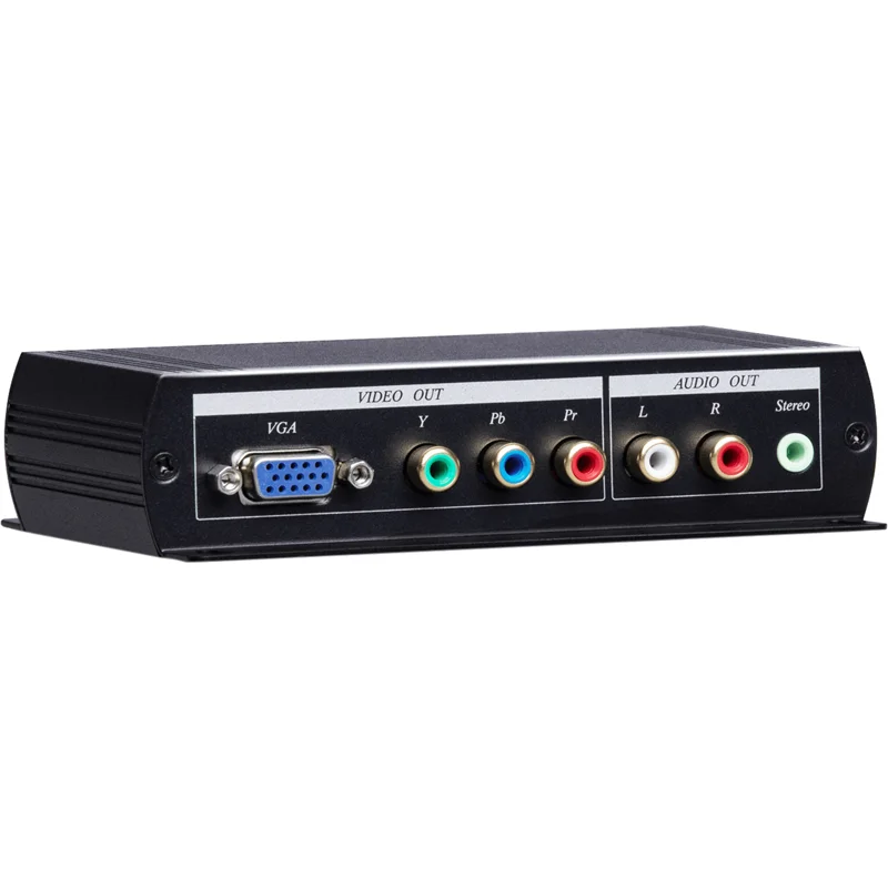 SC&T HVY01 Преобразователь HDMI (1.3) в VGA или компонентный видеосигнал и стерео аудиосигнал. 1 вход HDMI тип А, 1 выход VGA (до 1920х1200, 60Гц), 3 выхода RCA (до 1080p), 1 стерео аудио выход 3,5 мм