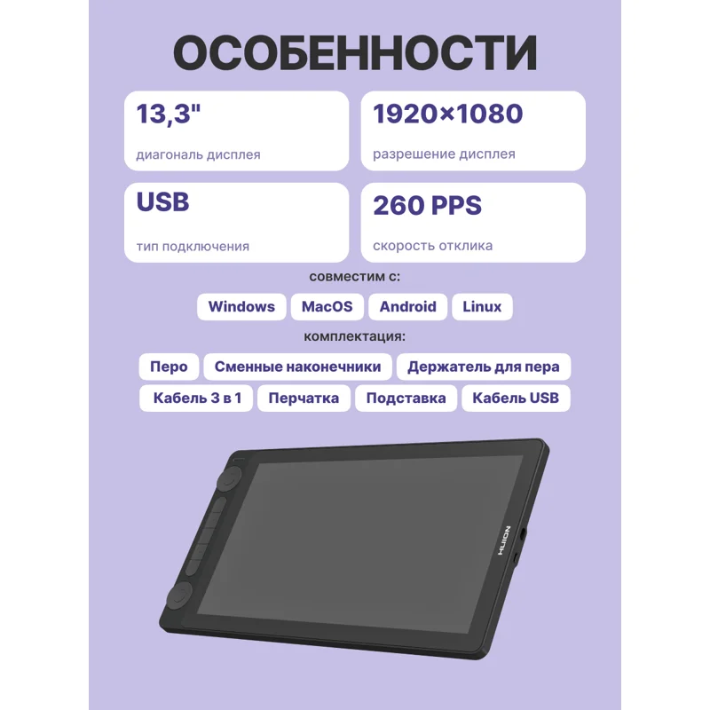 Сенсорный монитор Huion KAMVAS 13 Gen 3 Black