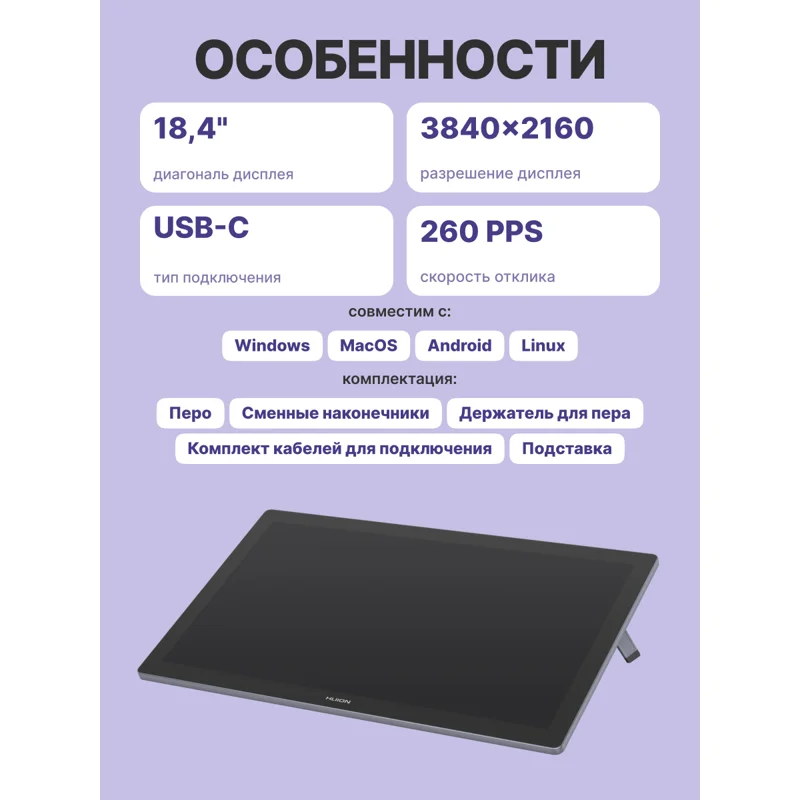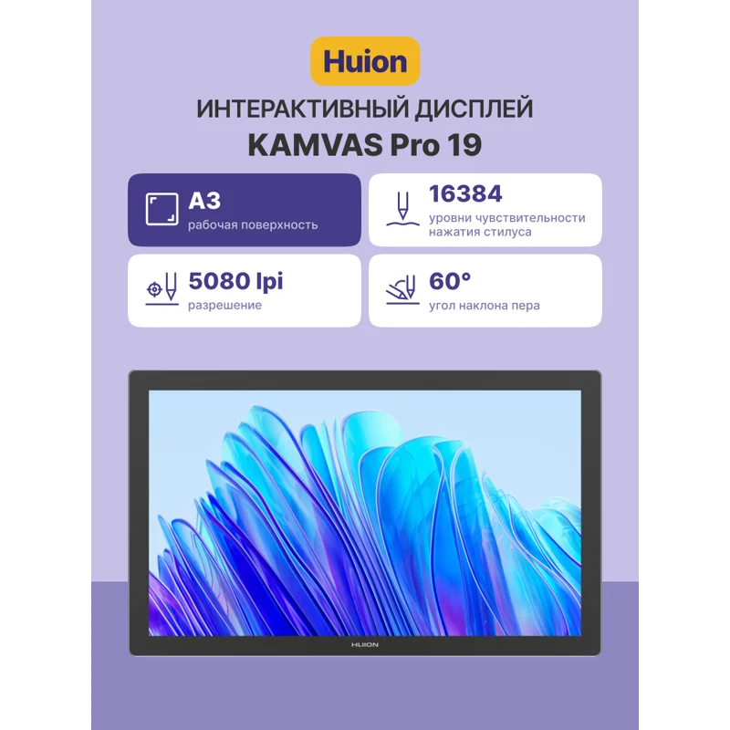 Kamvas Pro 19 — это профессиональный инструмент для творчества, сочетающий компактность и функциональность. Его размеры позволяют удобно брать устройство с собой куда угодно: тонкий профиль (всего 2,1 см) и легкий вес (около 2 кг) делают этот графический планшет идеальным спутником любого путешественника или занятого профессионала.