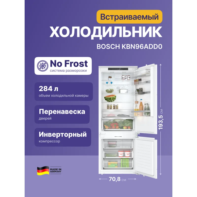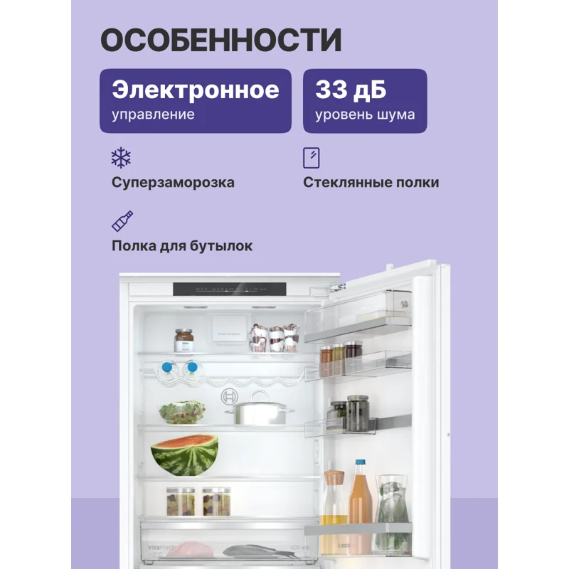 Встраиваемый холодильник с технологией Home Connect представляет собой современное и функциональное решение для вашей кухни. Этот холодильник сочетает в себе передовые технологии и удобные функции, обеспечивая оптимальные условия для хранения продуктов и удобство использования.