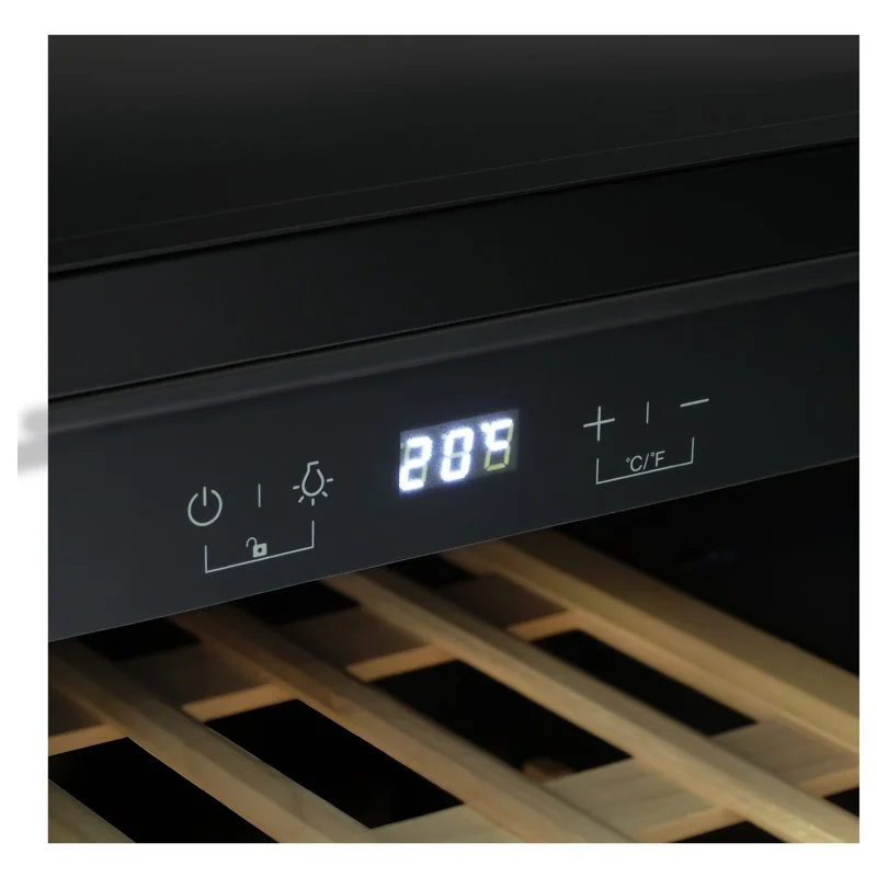 Оснащенный сенсорным управлением, этот винный шкаф обеспечивает точный контроль температуры и режимов работы. Сенсорное открытие дверцы — это не только удобно, но и современно, добавляя элемент технологичности. Одна температурная зона создает стабильные условия для хранения различных видов вин — от белых до красных. Вентилятор равномерно распределяет тепло внутри камеры, исключая перепады температуры и обеспечивая постоянство условий хранения. LED-освещение подчеркивает содержимое шкафа, делая его визуально привлекательным и одновременно энергоэффективным.