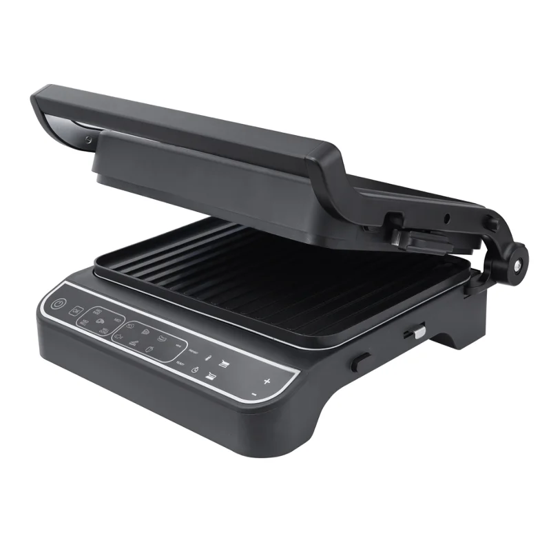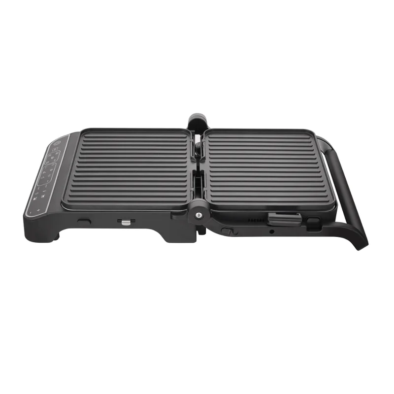 Рабочие панели размером 30х23 см обеспечивают достаточную площадь для одновременной обработки нескольких порций. Они съёмные и совместимы с посудомоечной машиной - уборка занимает минимум времени. Управление полностью электронное: сенсорные кнопки и цифровой дисплей делают настройку интуитивной. Можно задать таймер от 1 до 60 минут, а раздельная регулировка температуры верхней и нижней плит позволяет точно контролировать прожарку - от нежного томления до хрустящей корочки. Диапазон температур от 80°C до 230°C охватывает все основные кулинарные задачи.