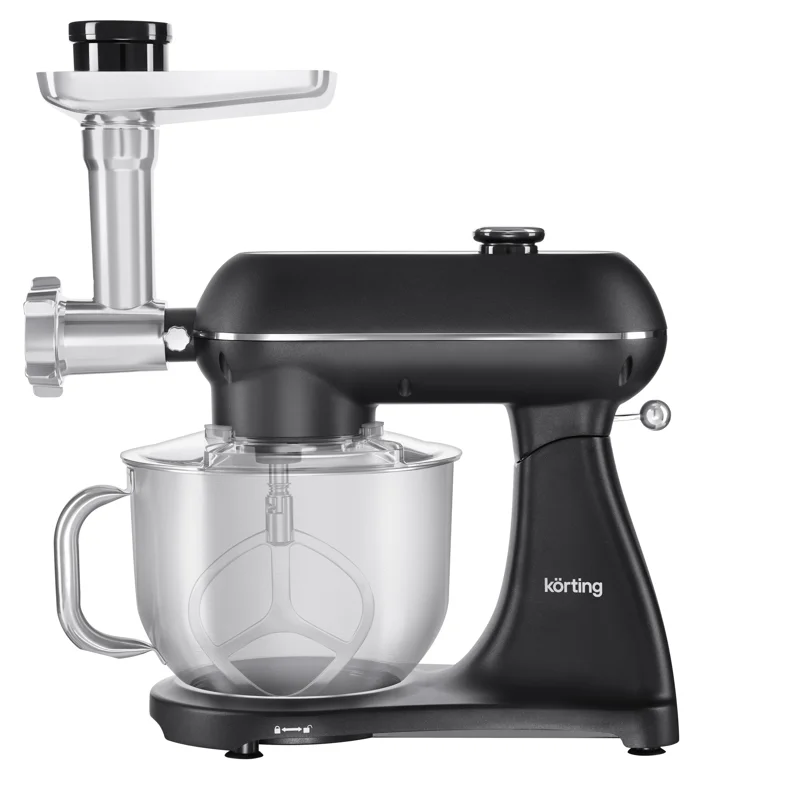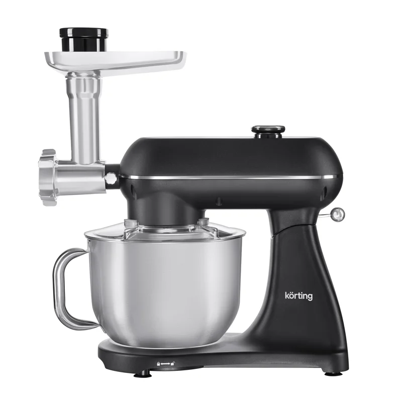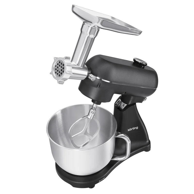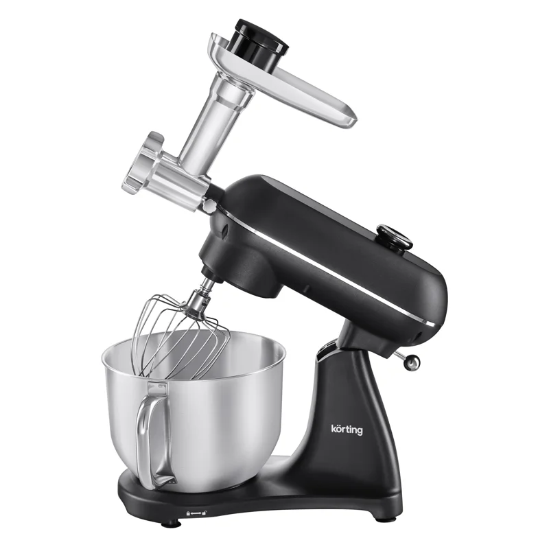 В комплект входят 5 основных насадок: насадка для смешивания, крюк для теста, венчик и насадка-мясорубка. Это позволяет выполнять широкий спектр кулинарных задач — от замешивания теста до приготовления фарша.