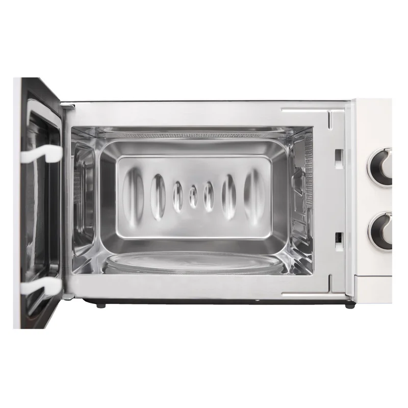 Печь оснащена несколькими режимами работы. Мощность микроволн составляет 700 Вт, а гриль работает на мощности 800 Вт, позволяя создавать аппетитную золотистую корочку на блюдах. Функция автоматической разморозки значительно упрощает процесс подготовки продуктов к приготовлению.
