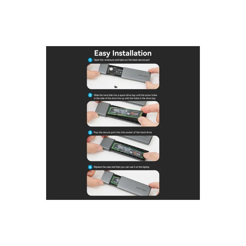 Внешний корпус предназначен для передачи данных между устройствами оборудованными разъемами M.2и USB 3.1-C. Незаменим при подключении SSD накопителя к ноутбуку, компьютеру или прочему оборудованию.