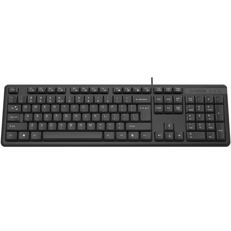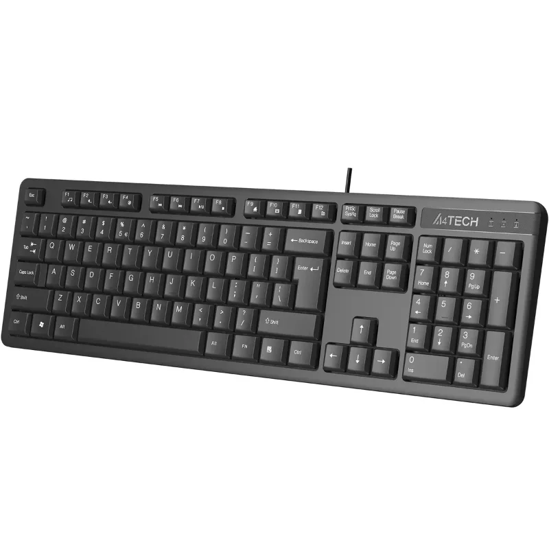 A4Tech KR-3 [1988374] — это проводная клавиатура, сочетающая базовую функциональность с элементами защиты от внешних воздействий. Модель ориентирована на пользователей, которым необходимо надежное устройство для повседневного набора текста и работы с цифрами в условиях, где существует риск пролития жидкости.