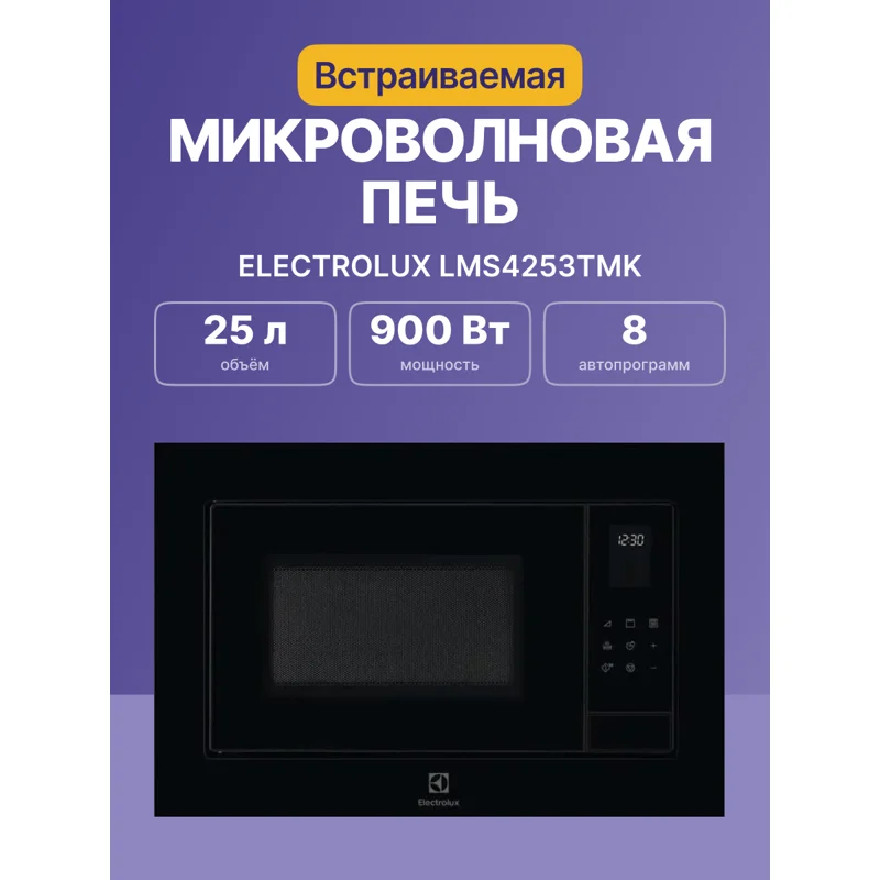 Встраиваемая микроволновая печь Electrolux LMS4253TMK — это сочетание современного дизайна и высокой функциональности. Ее элегантный внешний вид идеально впишется в любой интерьер кухни, а внутренний объем 25 литров обеспечивает достаточное пространство для приготовления разнообразных блюд. Благодаря компактным размерам и встроенной конструкции, устройство гармонично сочетается с мебелью, создавая аккуратный и современный облик кухни.