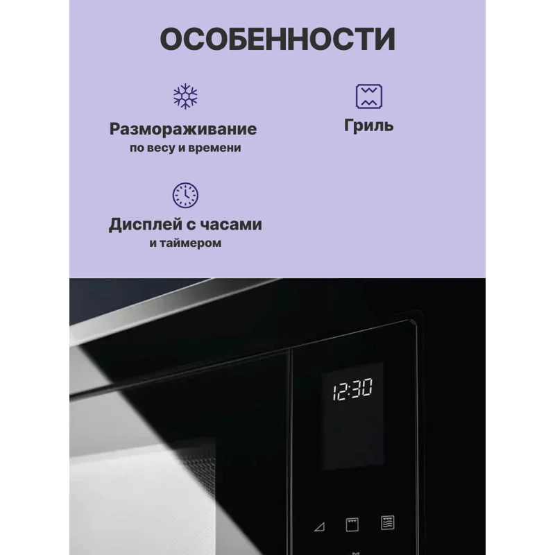 Микроволновая печь оснащена мощностью микроволн 900 Вт и грилем мощностью 1000 Вт, что позволяет быстро разогревать, готовить и запекать продукты. Быстрый нагрев обеспечивает мгновенное начало процесса, а высокая мощность гарантирует равномерное приготовление без горячих точек. Гриль позволяет достигать аппетитной корочки и хрустящей текстуры, делая блюда более вкусными и привлекательными.