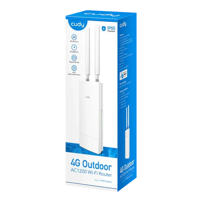 Cudy LT700 Outdoor — это универсальный роутер, предназначенный для использования как на улице, так и внутри помещений. Он сочетает в себе поддержку 4G LTE категории 6, Wi-Fi AC1200 и расширенные функции безопасности и управления, что делает его идеальным решением для обеспечения стабильного интернета в любых условиях.