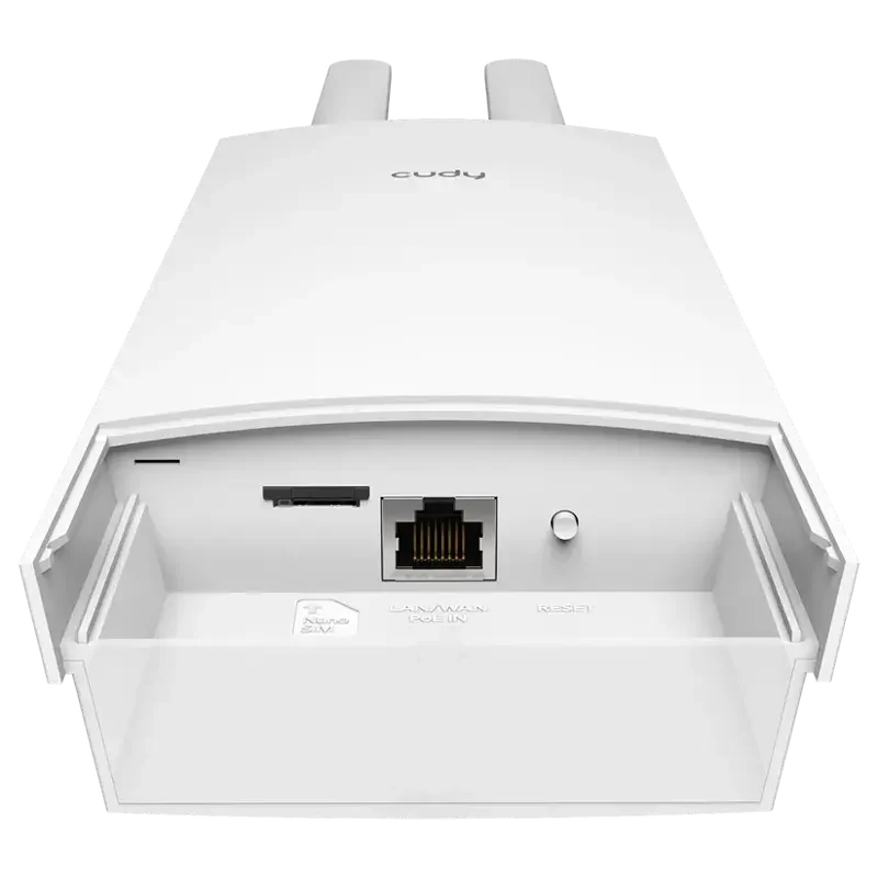 Cudy LT700 легко монтируется на мачте или стене, а поддержка PoE (802.3af/at или Passive PoE от 24 до 57 В) позволяет подключать устройство через один кабель питания и передачи данных. Встроенный слот для nano-SIM делает его мобильным решением для удаленных или труднодоступных мест.