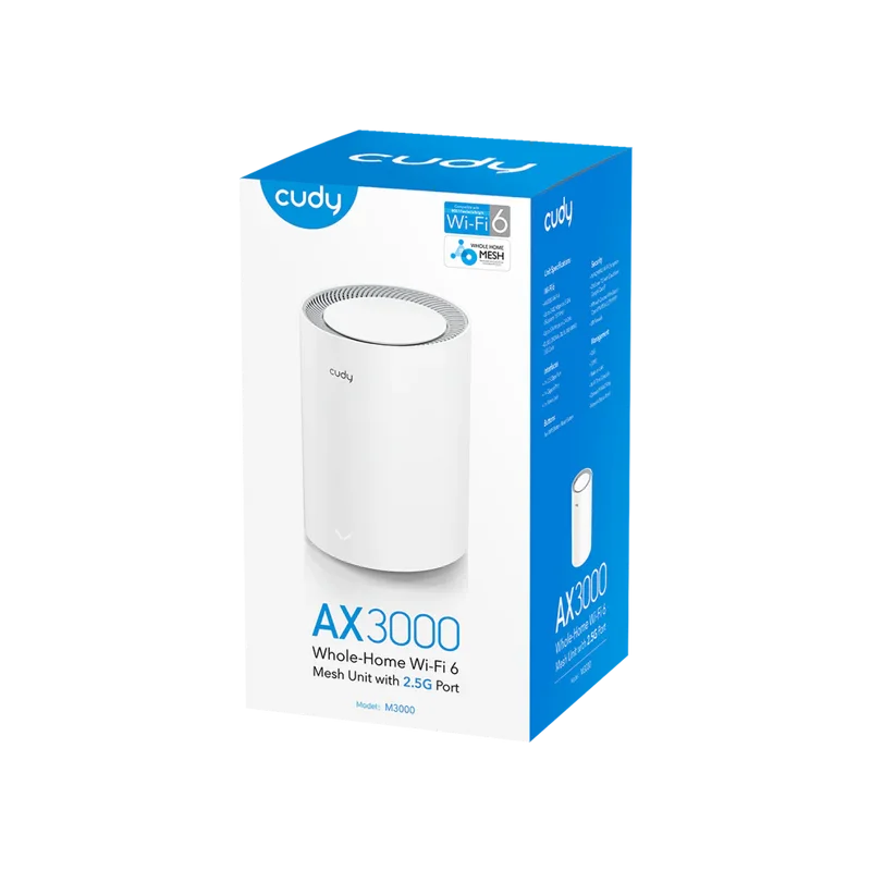 Cudy M3000(1-Pack) - идеальное решение для больших домов, где требуется быстрый и стабильный Wi-Fi сигнал для потоковой передачи 4K видео, онлайн-игр и других задач, требующих большой пропускной способности. Ключевые характеристики: • Wi-Fi 6: Поддерживает стандарт Wi-Fi 6, который обеспечивает высокую скорость передачи данных, низкую задержку и большую емкость сети. • Пять антенн: Система оснащена пятью антеннами, что обеспечивает широкий диапазон покрытия и стабильный сигнал Wi-Fi в больших помещениях. • Двухъядерный процессор 1,3 ГГц: Обеспечивает высокую производительность и эффективную обработку сетевого трафика. • 2402 Мбит/с + 574 Мбит/с Wi-Fi: Максимальная скорость передачи данных достигает 2976 Мбит/с, что обеспечивает достаточную скорость для потоковой передачи 4K видео и онлайн-игр. • 200 подключенных устройств: Система может поддерживать одновременное подключение до 200 устройств, что делает ее идеальным выбором для больших семей и корпоративных сетей. • Быстрый роуминг: Система обеспечивает плавный переход между точками доступа, что позволяет избегать прерываний соединения при перемещении по дому. • Cudy Mesh: Технология Cudy Mesh позволяет создать единую беспроводную сеть из нескольких точек доступа, что обеспечивает широкий диапазон покрытия и стабильный сигнал Wi-Fi в любой точке дома. • VPN-сервер и клиент: Маршрутизатор поддерживает VPN функции как сервер, так и клиент, что позволяет создать безопасное подключение к корпоративной сети или использовать VPN для доступа к заблокированным сайтам. • Приложение Cudy, облачное управление: Управление системой осуществляется через приложение Cudy, что позволяет настраивать и управлять им удаленно. Преимущества: • Высокая скорость и стабильность: Wi-Fi 6 и пять антенн обеспечивают быструю и стабильную передачу данных в любой точке дома. • Широкий диапазон покрытия: Система Mesh Wi-Fi позволяет покрыть большие помещения, обеспечивая стабильный сигнал Wi-Fi для всех устройств. • Простота установки и управления: Приложение Cudy делает установку и управление системой простыми и интуитивно понятными. • Безопасность: VPN функции обеспечивают безопасное подключение к интернету. Применение: • Создание быстрой и стабильной беспроводной сети в больших домах с потоковой передачей 4K видео, онлайн-играми и другими задачами, требующими большой пропускной способности. • Обеспечение беспроводного интернет-доступа для многих устройств в большом доме. • Создание безопасного подключения к интернету с помощью VPN.