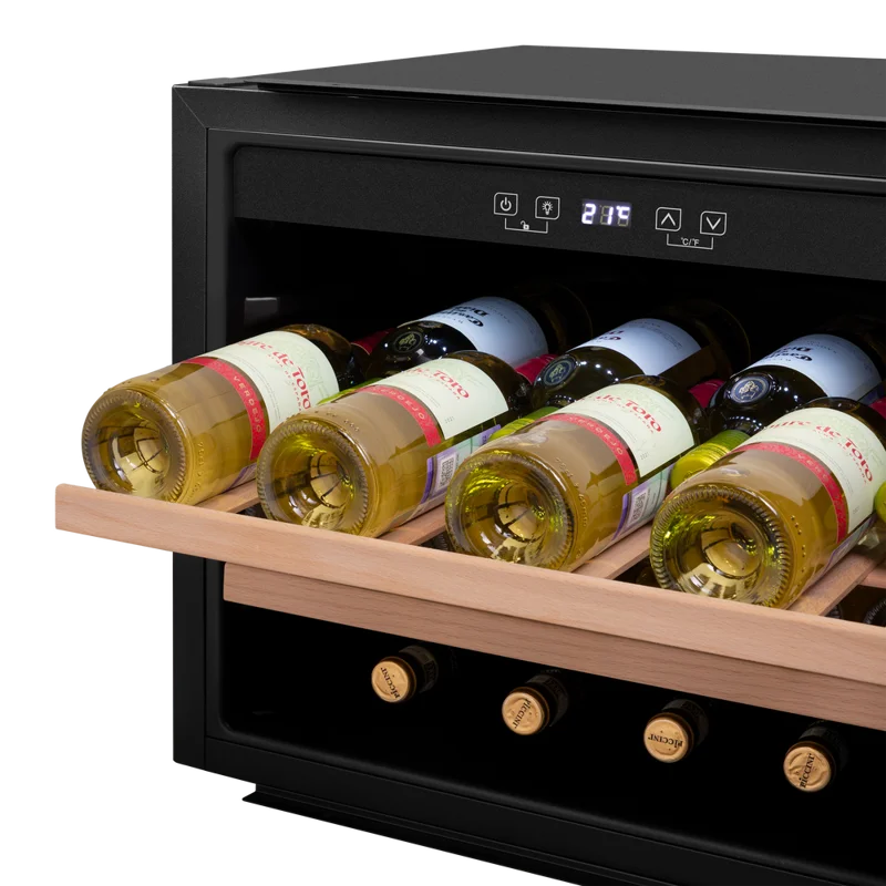 Оптимальный уровень влажности от 50 до 80% помогает сохранить пробки эластичными и предотвращает высыхание вина. Вентилятор внутри шкафа равномерно распределяет холодный воздух, создавая стабильный микроклимат для напитков. Элегантное светодиодное освещение мягко подсвечивает содержимое шкафа, позволяя красиво демонстрировать вашу коллекцию и быстро находить нужную бутылку, не нарушая температурный режим.