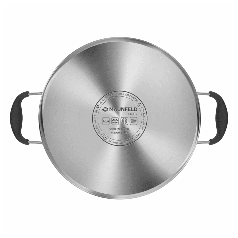 Посуда из нержавеющей стали неизменно пользуется любовью хозяек и поваров, которые знают толк в приготовлении вкусной еды. Продукты, приготовленные в посуде MAUNFELD серии LAURA из нержавеющей стали, надолго сохраняют питательные свойства, витамины, натуральный аромат и вкус приготовленных блюд. В них можно готовить первые блюда, вареные овощи, макароны, каши, пельмени, компоты и многое другое.