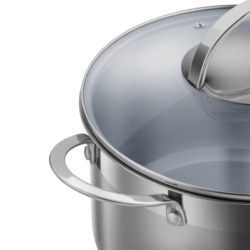 Предпочитаете современный минималистичный дизайн? Тогда посуда коллекции GERDA точно придется вам по вкусу! С первого взгляда она очаровывает простыми формами, которые гармонично впишутся в любой кухонный интерьер. Настоящие эстеты по достоинству оценят сочетание матированной полировки корпуса с глянцевыми аксессуарами : эффектное и очень изысканное. Все предметы коллекции изготовлены из высококачественной нержавеющей стали, которая гарантирует посуде длительный срок службы. Все предметы коллекции оснащены крышками из термостойкого стекла с отверстиями для выхода пара. Для особого удобства в использовании на внутренней поверхности стенок посуды имеются отметки литража. В ажное замечание: все предметы коллекции можно использовать на любых плитах. Посуда серии GERDA сделана из самой безопасной высококачественной нержавеющей стали марки 18/10 (INOX304), обладает коррозийной стойкостью, очень легка в уходе. Многослойное капсульное дно обеспечивает равномерный нагрев и распределение тепла благодаря алюминиевой прослойке, раскрывая вкусовые качества блюда и сохраняя все полезные свойства продуктов, а индукционный слой делает посуду универсальной для всех типов плит. Посуда из нержавеющей стали неизменно пользуется любовью хозяек и поваров, которые знают толк в приготовлении вкусной еды. Продукты, приготовленные в посуде MAUNFELD серии GERDA из нержавеющей стали, надолго сохраняют питательные свойства, витамины, натуральный аромат и вкус приготовленных блюд. • Многослойное капсульное индукционное дно (для всех типов плит, высокая теплопроводность) • Мерная шкала (для контроля количества жидкости) • Прозрачная стеклянная крышка с паровыпуском позволяет наблюдать за готовностью пищи, не открывая посуду, тем самым, исключая попадания брызг на кожу и одежду • Кастрюли пригодятся для приготовления овощей, первых и вторых блюд, компотов и т.д. • Корпус из высококачественной нержавеющей стали 18/10 (INOX304) - устойчив к коррозийным повреждениям — кастрюли и ковши не ржавеют и не боятся влаги. • Прочность и стойкость к механическим повреждениям — не страшны царапины. Можно использовать металлические лопатки и ложки при приготовлении блюд.