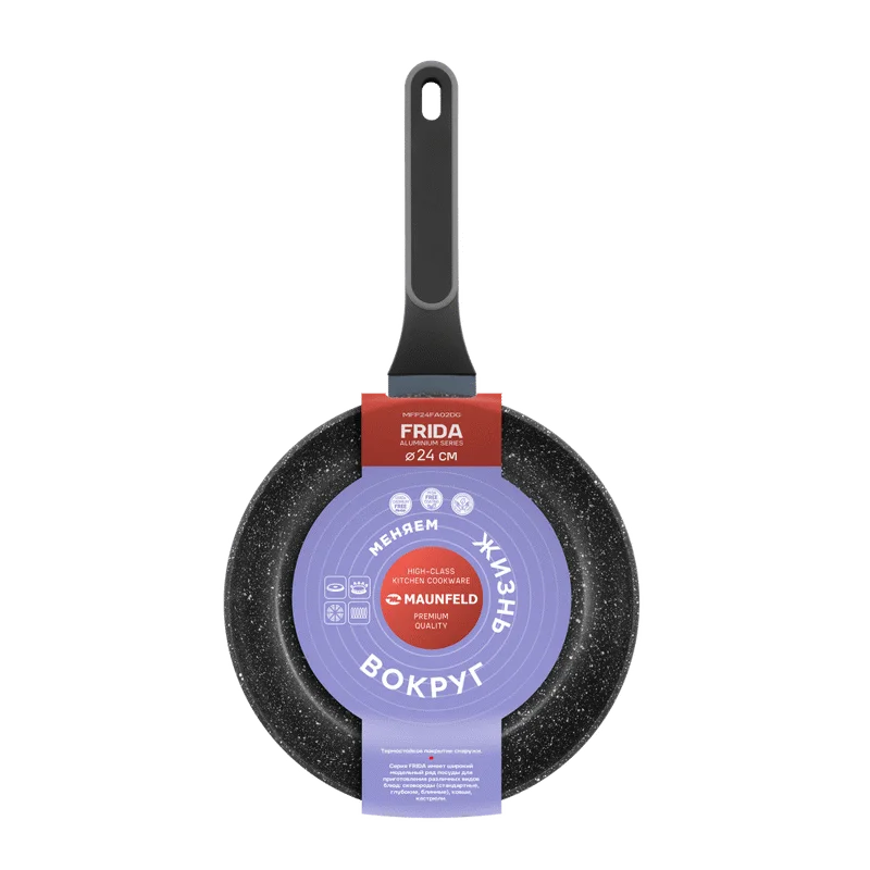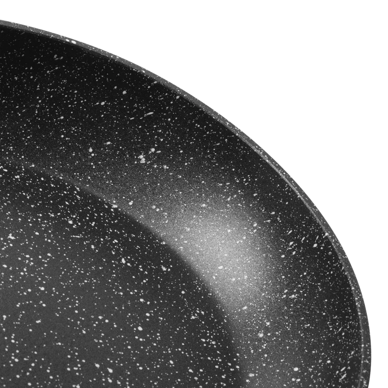 Мраморное антипригарное покрытие абсолютно инертно — это гарантирует, что в пищу не попадет никаких вредных примесей и веществ даже при воздействии очень высоких температур. Поверхность посуды не подвержена загрязнениям и не впитывает запахи.