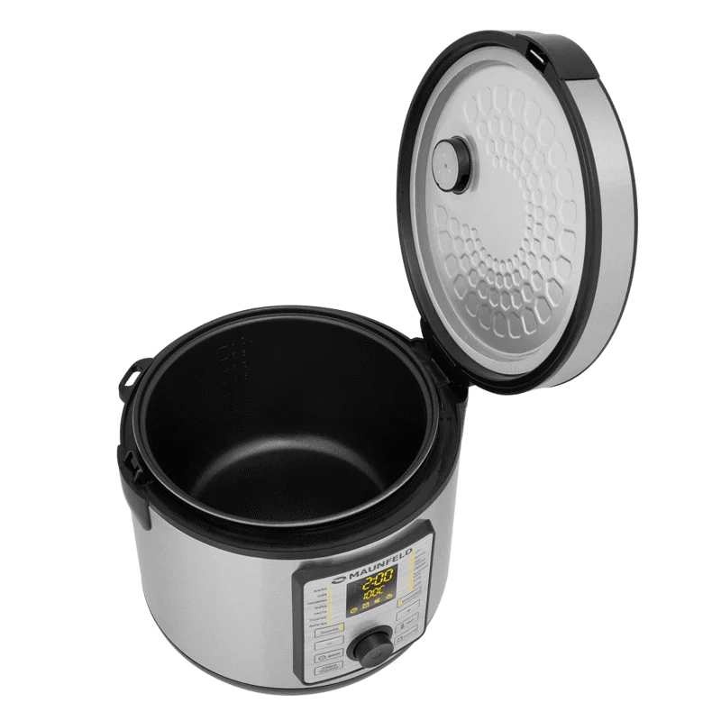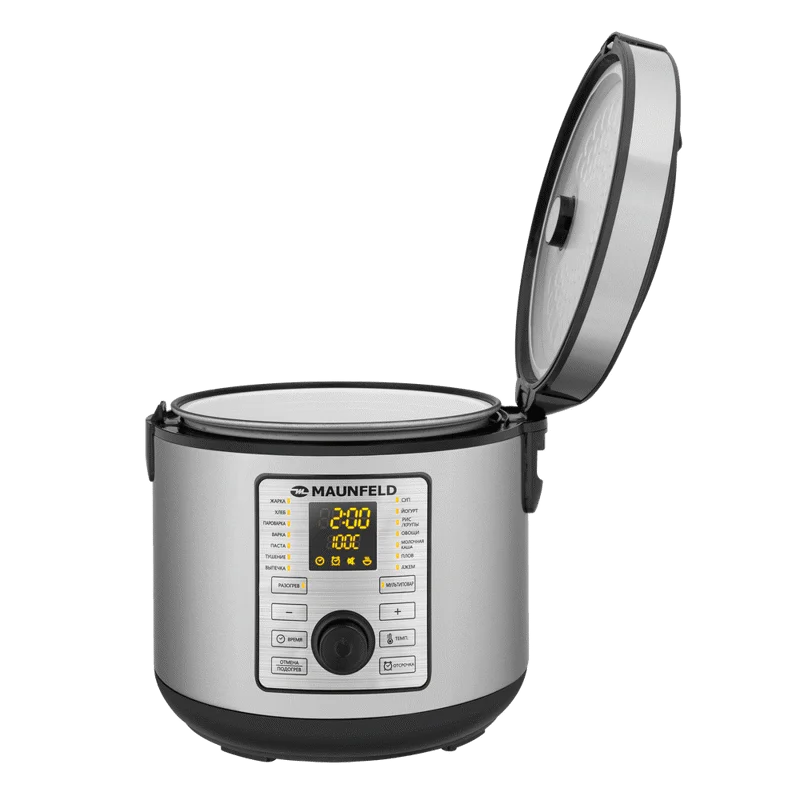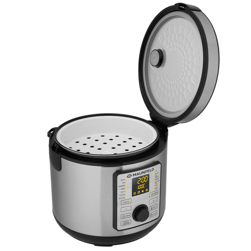 Электронная панель управления : одно прикосновение к панели и мультиварка приготовит все, как вы хотите. Материал корпуса выполнен из нержавеющей стали. Мощность 860 Вт позволит быстро приготовить блюдо, не расходуя много электроэнергии. Благодаря функции отложенного старта можно запрограммировать мультиварку так, чтобы она приготовила полезный завтрак или здоровый ужин к назначенному времени. Звуковой сигнал оповестит о завершении программы приготовления. В мультиварке предусмотрено 17 автоматических программ приготовления. Программа «Мультиповар» позволит изменять настройки времени и температуры по своему вкусу. Для удобства в мультиварке имеются функции «Автоподогрев» (с возможностью его отключения) и разогрев готовых блюд. Прочная 5 литровая чаша мультиварки устойчива к воздействию высоких температур. Чаша имеет антипригарное покрытие, благодаря чему готовить можно с минимальным количеством масла. Благодаря новейшим разработкам , продукты в процессе приготовления сохраняют питательные вещества и витамины Оптимальная комплектация для удобства приготовления: подставка для варки на пару, мерный стакан, ложка для риса/супа.