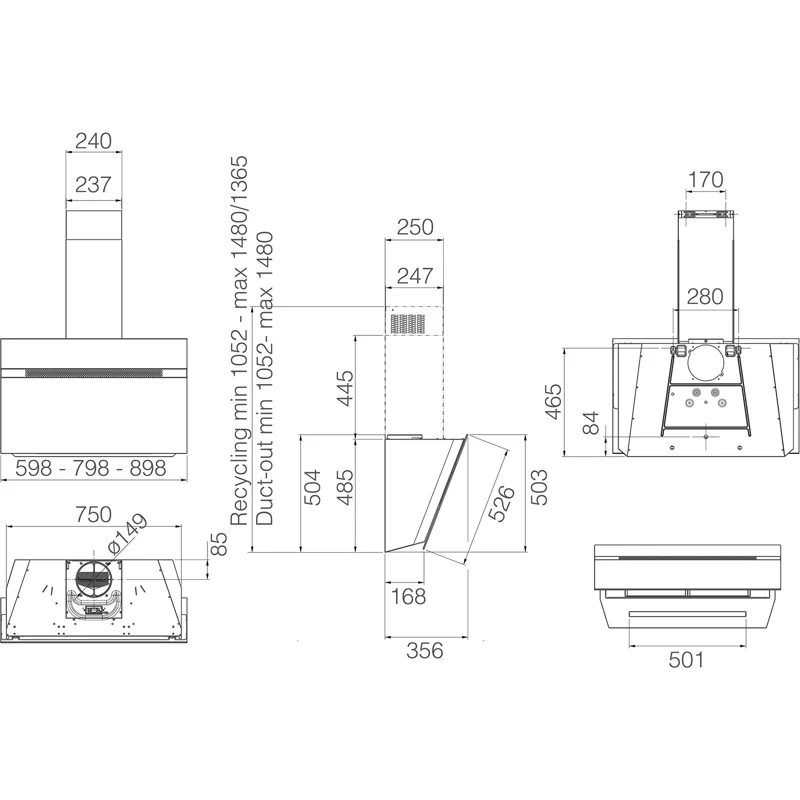 Вытяжка поддерживает режимы отвода и рециркуляции, что позволяет адаптировать её под особенности вентиляции в помещении. Технологии Back Aspiration и Multi-D Capture обеспечивают равномерное и мощное втягивание воздуха со всех сторон.