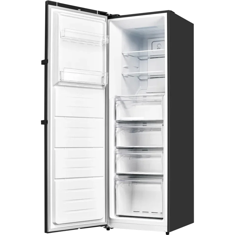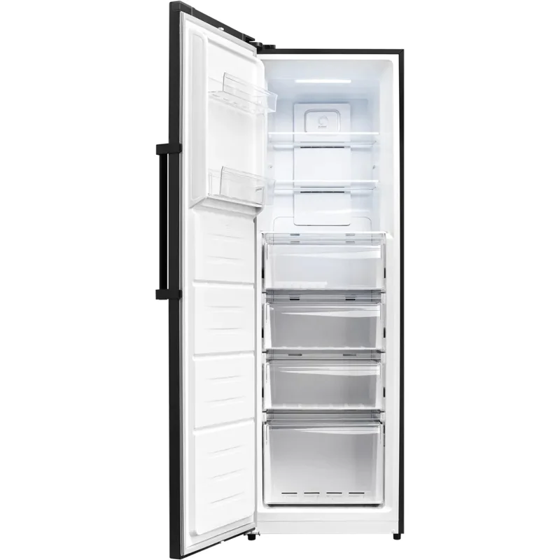 Чёрный цвет придаёт морозильной камере современный и элегантный вид, гармонично вписывающийся в любой интерьер кухни или кладовой.