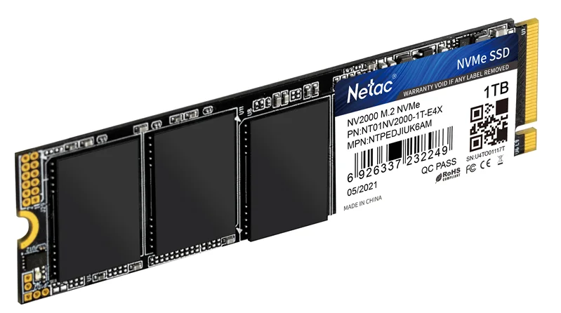 Netac SSD NV2000 1TB PCIe 3 x4 M.2 2280 NVMe 3D NAND, R/W up to 2500/2100MB/s, IOPS(R4K) 150K/280K, TBW 600TB, 5y wty