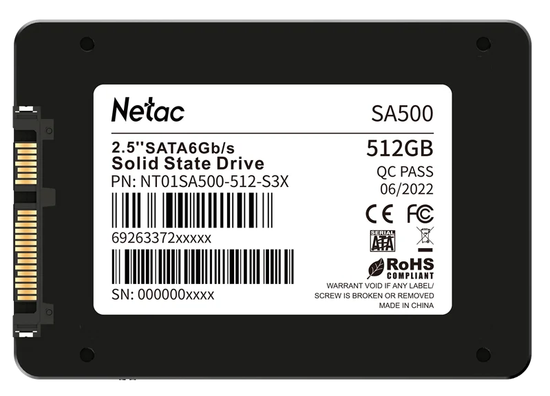 SSD накопитель Netac SSD SA500 512GB 2.5 SATAIII 3D NAND, R/W up to 520/450MB/s, TBW 240TB, 3y wty
