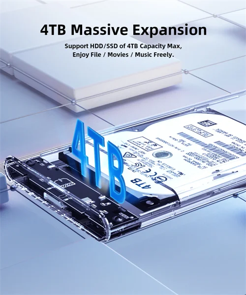 Netac WH11 2.5 SATA to USB3.0 External HDD/SSD Case, Slide Transparent Cover, with USB3.0 A to B cable