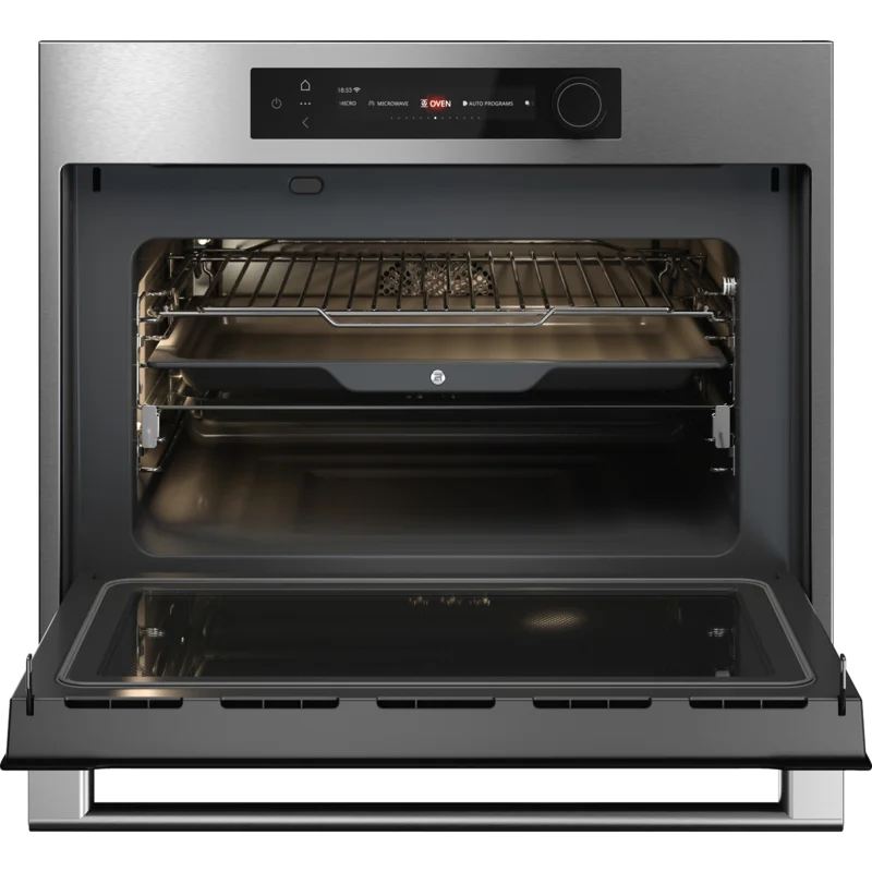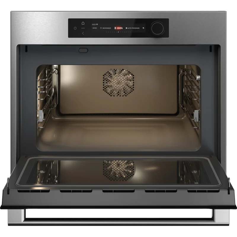 ASKO OCM64SSH — это компактный встраиваемый духовой шкаф шириной 45 см, объединяющий функции классической духовки и микроволновой печи. Модель идеально подходит для современных кухонь, где важны функциональность, экономия пространства и премиальный дизайн.