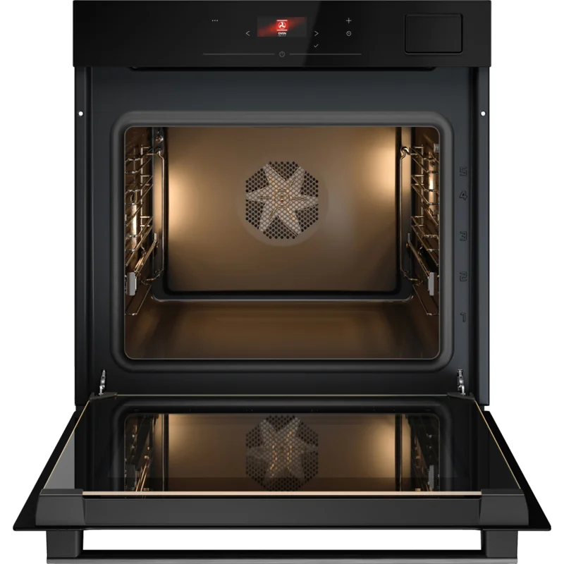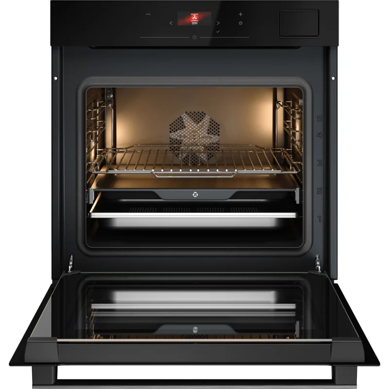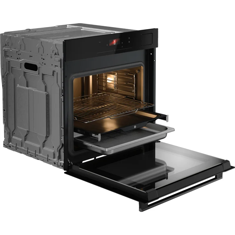 Рабочая камера вместимостью 71 литров открывает широкие возможности для одновременного приготовления большого количества блюд. Внутри расположены удобные съёмные решетки и противень, оборудованные телескопическими направляющими для лёгкого перемещения. Особый бонус — плавное открытие и закрытие двери, минимизирующее шум и обеспечивающее комфортное пользование.