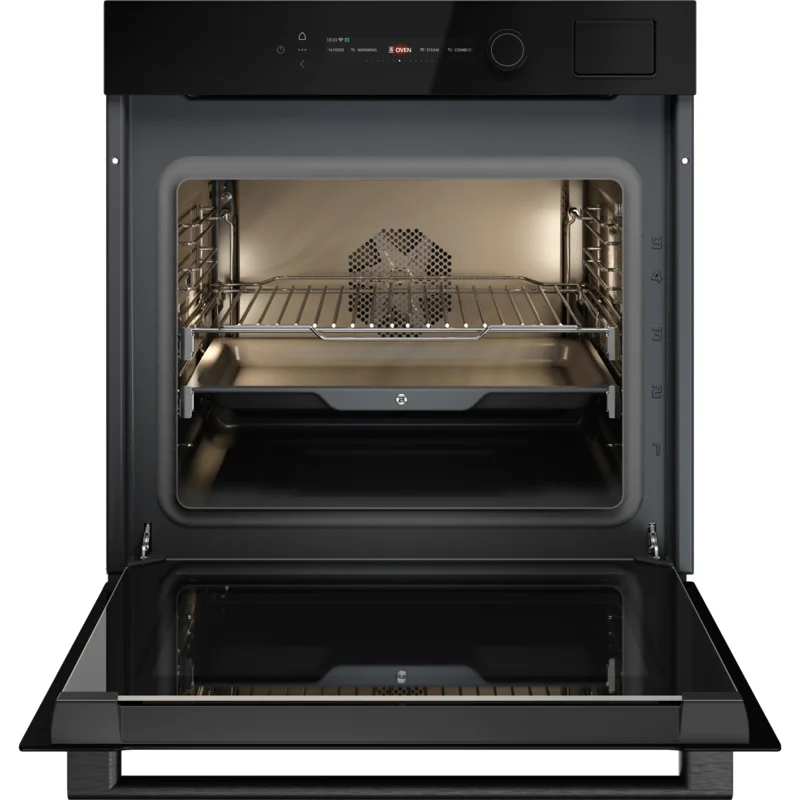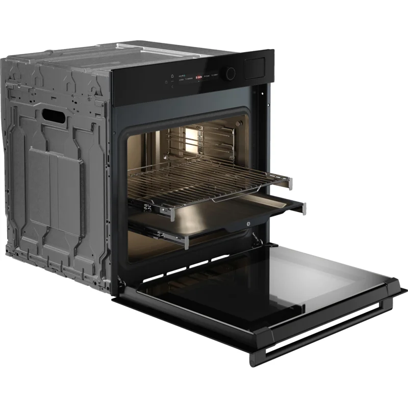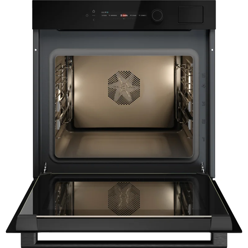 Встраиваемый духовой шкаф Asko OCS56BGH в черном цвете предлагает широкий простор для кулинарного творчества благодаря своему внутреннему объему 71 л и интеллектуальным системам приготовления, которые гарантируют безупречный результат даже для самых сложных рецептов. Современные технологии Духовой шкаф оснащен системой Air Flow 360, которая обеспечивает идеальную циркуляцию горячего воздуха, что позволяет добиться равномерного пропекания блюд на всех уровнях. Особого внимания заслуживает запатентованная технология Celsius Cooking, отвечающая за точность температурного контроля с отклонением всего в 1°С. Это открывает возможности для деликатного приготовления сложных блюд, таких как су-вид или авторские десерты. Многообразие режимов и автоматизация Модель предлагает десять основных режимов и 93 автоматические программы, которые охватывают все этапы кулинарного процесса от размораживания до пастеризации. Вы можете доверить приготовление интеллекту духовки, используя функции пошаговых рецептов, отложенного старта и сохранения программ. Для любителей здоровой пищи предусмотрен специальный эко-режим, а функция «Шаббат» делает модель удобной для соблюдения традиций. Эргономика и удобство использования Управление духовым шкафом осуществляется с помощью сенсорно-поворотных элементов и яркого цветного TFT-дисплея, что делает процесс интуитивно понятным. Внутреннее пространство освещает двустороннее галогенное освещение, позволяющее контролировать состояние блюда, не открывая дверцу. Телескопические направляющие обеспечивают плавное и безопасное извлечение даже тяжелых противней, а система плавного закрывания дверцы UltraCoolDoorQuadro+ с четырьмя стеклами гарантирует максимальный комфорт и безопасность. Мощность и практичность Благодаря пиролитической системе очистки духовой шкаф самостоятельно справляется с самыми сложными загрязнениями, превращая их в пепел, который легко удалить влажной губкой. Максимальная температура нагрева в 250°C и функция быстрого разогрева экономят время. В комплектацию входят все необходимое для начала работы: два противня, решетка и термощуп для точного контроля температуры внутри блюда.