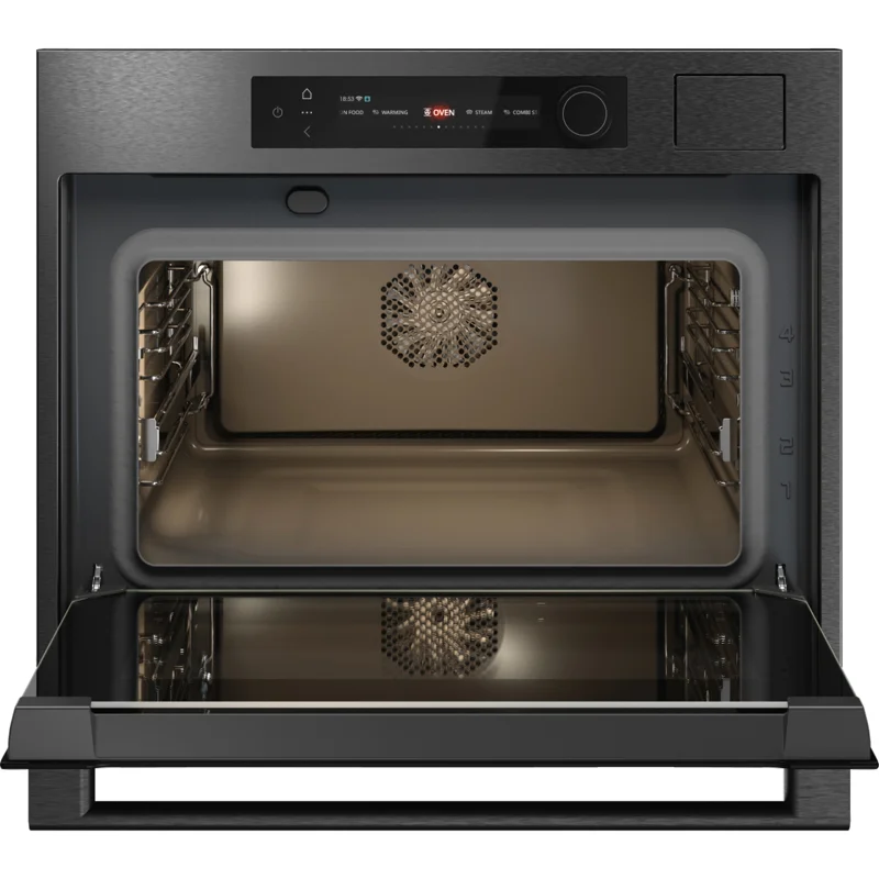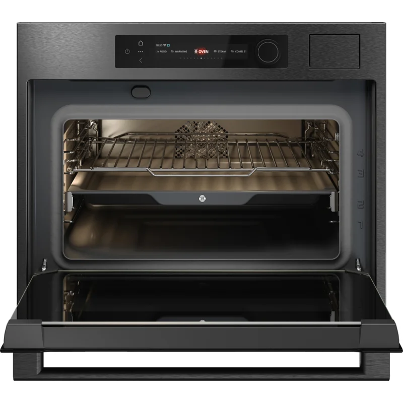 Встраиваемый духовой шкаф Asko OCS64BSH в цвете черной нержавеющей стали — это воплощение скандинавской эстетики, где строгий дизайн гармонично сочетается с передовыми технологиями. Модель не просто дополнит кухонное пространство, а станет его интеллектуальным центром, открывающим безграничные возможности для кулинарного творчества. Точность и контроль температуры Одной из ключевых инноваций духового шкафа является технология Celsius Cooking, которая обеспечивает нагрев с точностью до 1°С. Это позволяет добиваться идеального результата в приготовлении даже самых требовательных блюд, таких как нежные су-вид стейки или воздушные безе. Установленная температура будет поддерживаться в течение всего процесса готовки, что гарантирует стабильно высокое качество и воспроизводимость любимых рецептов. Многообразие режимов и программ В шкаф заложены 127 автоматических программ и 15 режимов нагрева. От классического нагрева и гриля большой площади до специализированных функций, таких как интенсивное запекание AirFry для полезной жарки без масла, и нескольких программ приготовления на пару. Уникальные режимы вроде «Ошибори» для поддержания влажности риса или «Горячие камни» демонстрируют глубокую проработку кулинарных процессов, предоставляя возможности, выходящие далеко за рамки стандартной духовки. Удобство и уход Управление устройством интуитивно понятно благодаря сенсорным элементам и цветному TFT-дисплею. Телескопические направляющие обеспечивают легкий доступ к содержимому, четыре уровня приготовления и двустороннее освещение делают работу комфортной. Забота о чистоте реализована через гидролитическую систему Aqua Clean, съемный стеклопакет дверцы значительно упрощает уход. Дверца закрывается тихо и плавно, предусмотрена защита от детей.