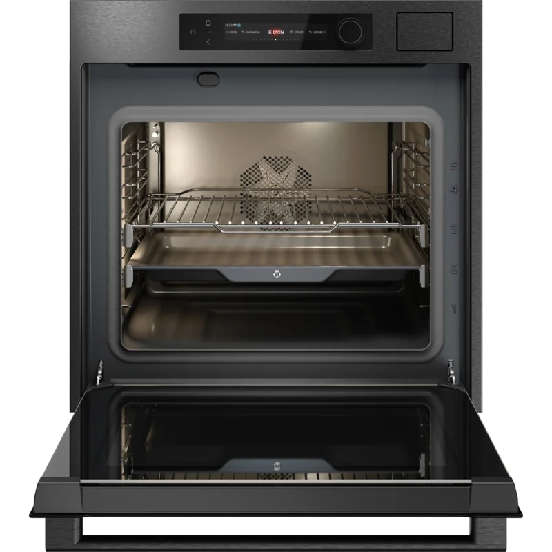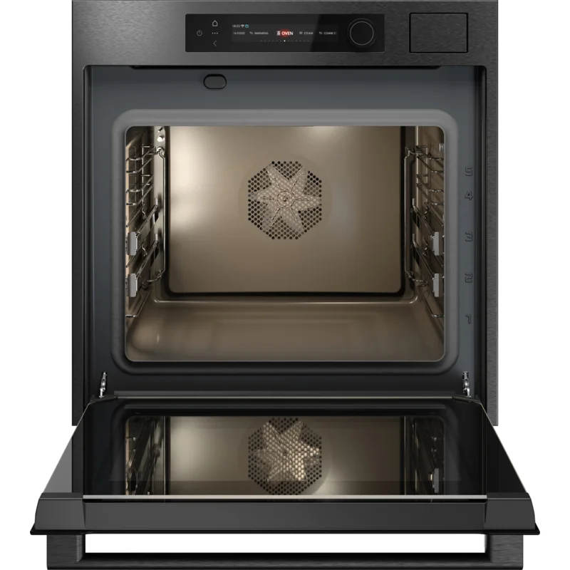 Умные технологии и стиль Поддержка Wi-Fi расширяет возможности управления и контроля приготовления. Элегантное исполнение в цвете Black Steel подчёркивает премиальный характер прибора и гармонично дополняет современный интерьер кухни.
