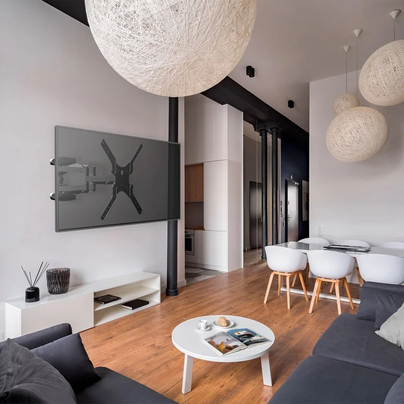 ONKRON M5 обладает широчайшими возможностями наклона и поворота, предусматривает регулировку экрана по вертикали и горизонтали. Крепкий и прочный, при этом элегантный кронштейн станет стильным дополнением домашнего интерьера.