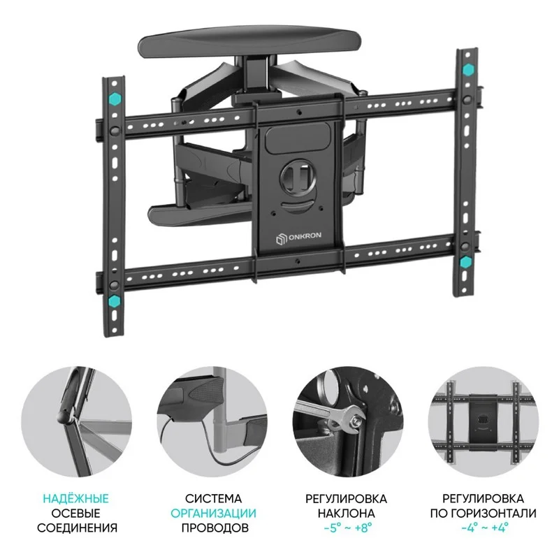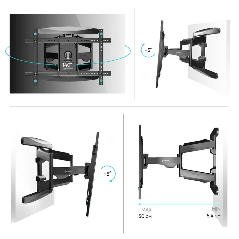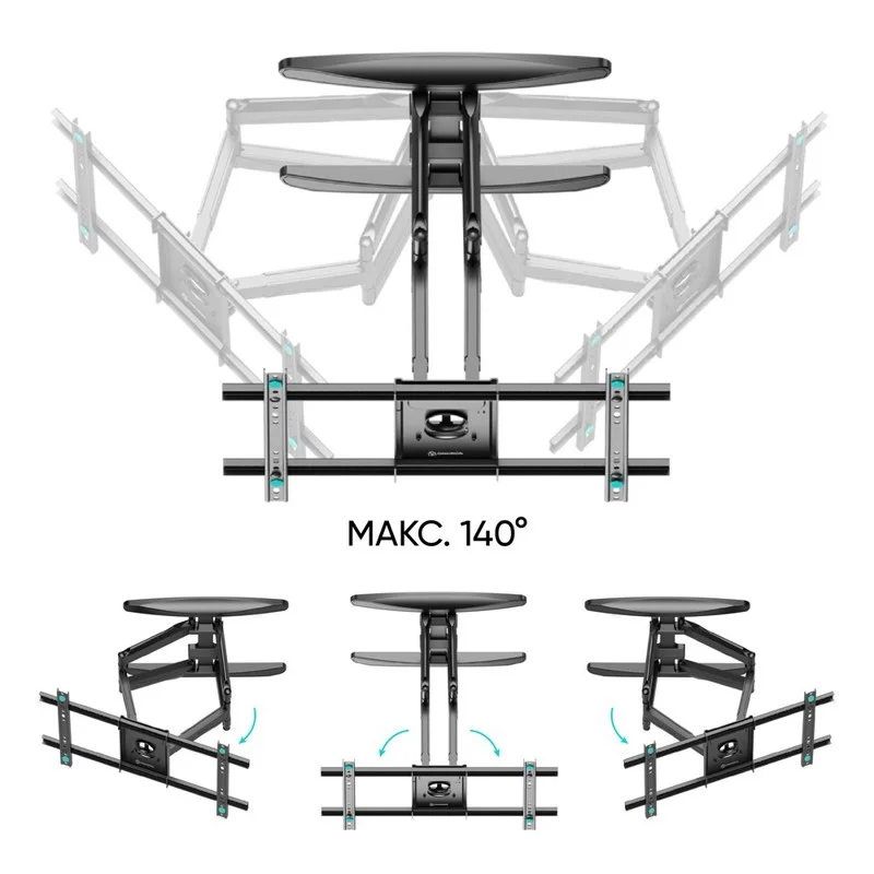 Он обеспечивает возможность маневренного поворота кронштейна на угол до 140°. Для поворота телевизора Вам не нужно использовать дополнительных приспособлений или прилагать усилия. Вы сможете повернуть ТВ-панель и изменить расстояние от стены лёгким движением руки, при этом телевизор зафиксируется в настроенном положении.