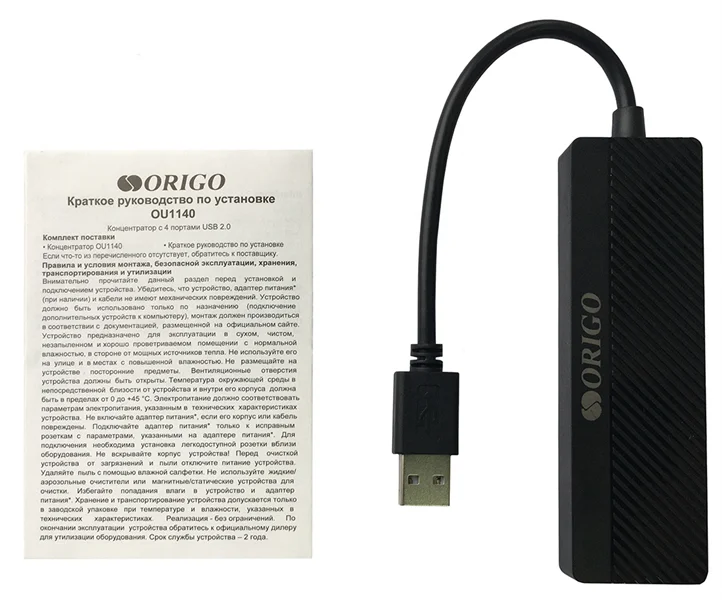 USB хаб ORIGO Концентратор USB 2.0, 4xUSB 2.0, без адаптера питания в комплекте