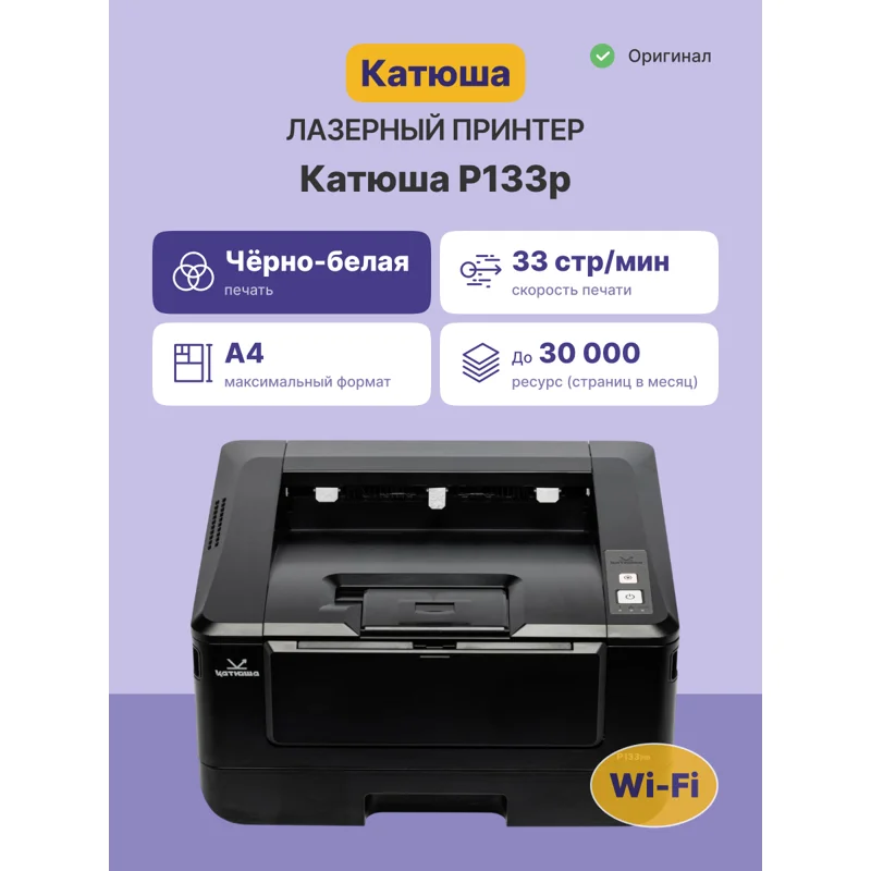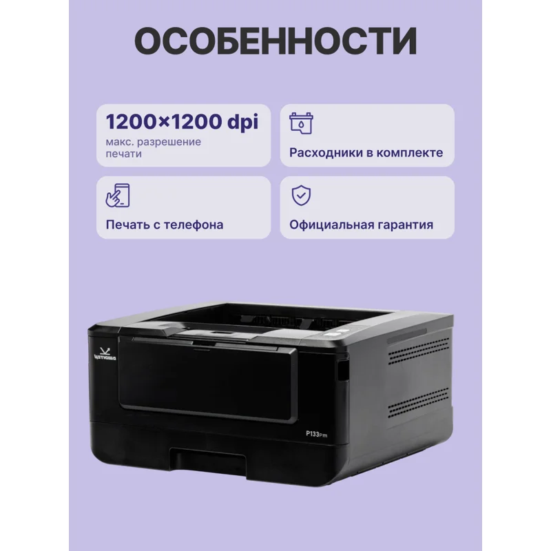 Принтер Катюша P133p — это высокопроизводительное устройство, предназначенное для быстрой и качественной монохромной печати. Он идеально подходит для использования в офисах и домашних условиях, где требуется надежное и эффективное печатное устройство. Принтер обладает рядом преимуществ, которые делают его выбором для пользователей, ценящих скорость и качество печати.