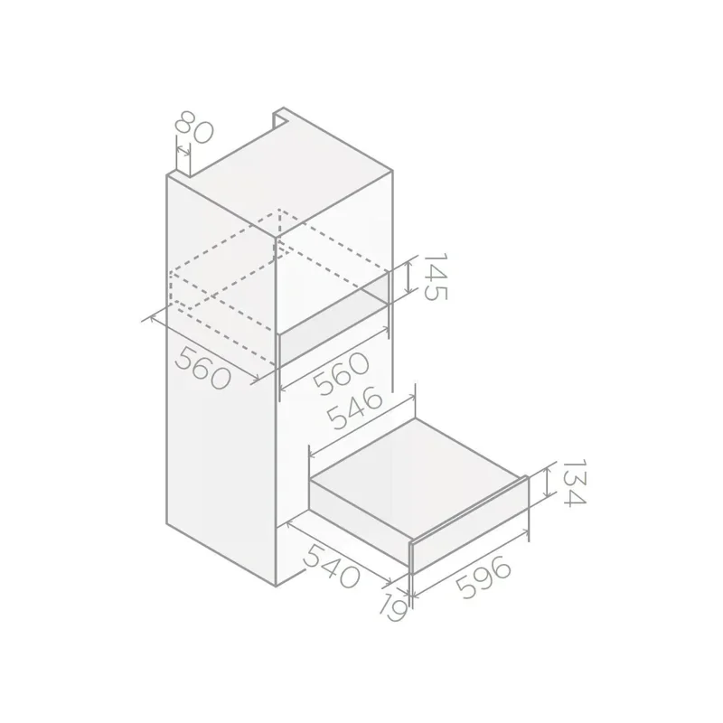 Встраиваемый шкаф для подогрева посуды. Диапазон температур от 40° C до 80° C. Мощность 400 Вт.