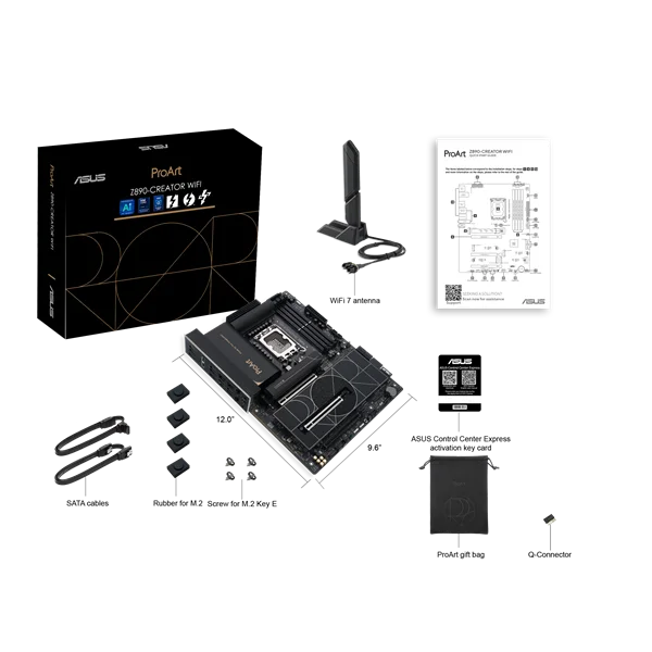Материнская плата ASUS PROART Z890-CREATOR WIFI, LGA1851, Z890, 4*DDR5, 4*SATA, 5*M.2, 6*USB 3.2, 1*USB 2.0, Type-C, 3*PCIx16, DP+HDMI, ATX; 90MB1JD0-M0EAY0
