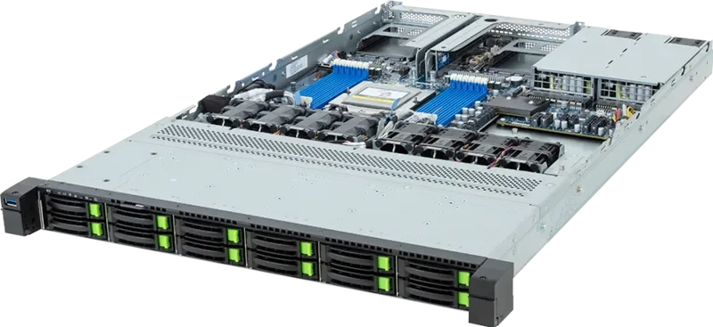 Шасси серверное Gigabyte Server Platform R163-Z35 Rev.3x / 1U / 1xAMD (9004/9005) / 1xHS / 12xDIMM / 12xSFF NVME/SAS/SATA + 1xM.2 PCIe Gen3 / 1x1GbE / 2xOCP 3.0 / 2xFHHL / 2x1300W / Rails / 1Y