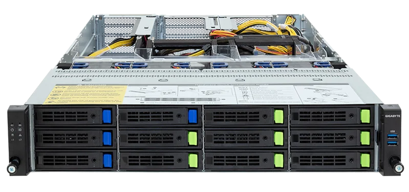 Шасси серверное Gigabyte Server Platform R283-ZF0 Rev. 3x / 2U / 2xAMD (9004/9005) / 2xHS / 24xDIMM / 8xLFF NVMe/SAS/SATA + 4xLFF SAS/SATA / 4xGPUs DS / 1xOCP 3.0 / 1xFHHL / 2x2700W / Rails / 1Y