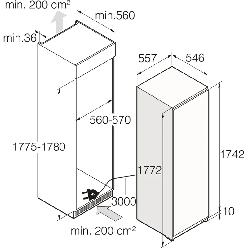 Шкаф предназначен для полного встраивания в кухонную мебель, что позволяет сохранить единый стиль интерьера. Его габариты (550 мм в ширину, 540 мм в глубину и 1770 мм в высоту) делают его универсальным для большинства кухонных пространств.