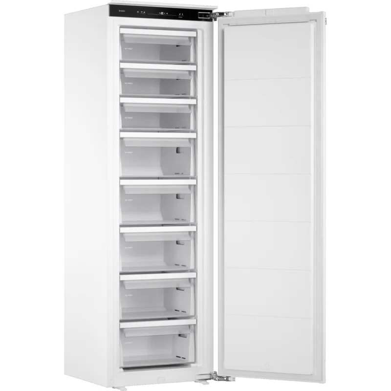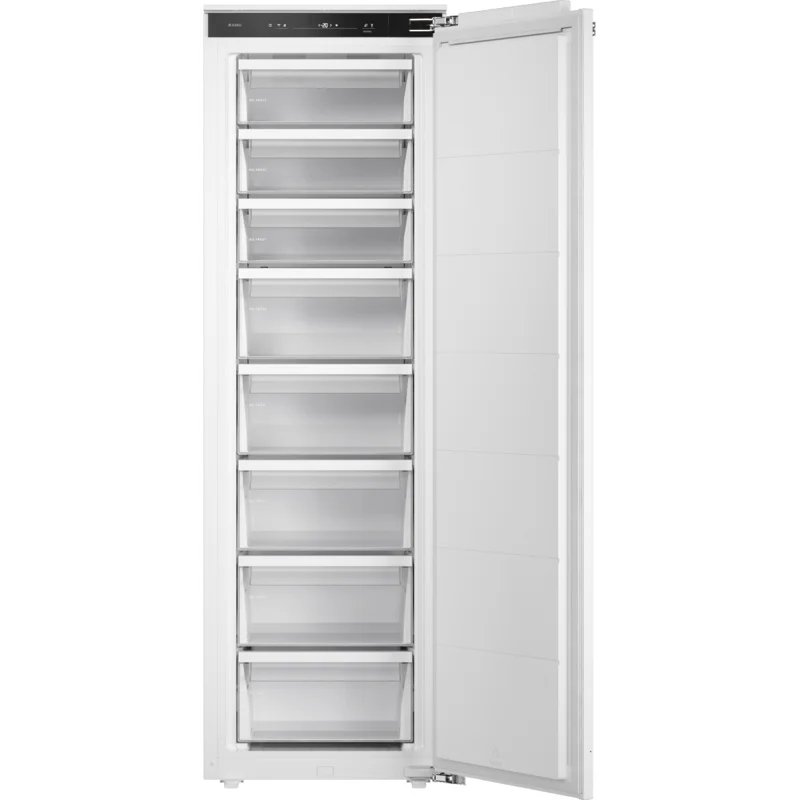 Объём морозильной камеры составляет 189 литров, что позволяет разместить большое количество продуктов. Шкаф оснащён системой No Frost , исключающей необходимость ручной разморозки, а также функцией быстрой заморозки, которая обеспечивает быстрое и равномерное замораживание свежих продуктов. Внутри предусмотрено 8 ящиков для удобного хранения. Уровень шума не превышает 35 дБ, что делает работу шкафа практически бесшумной.