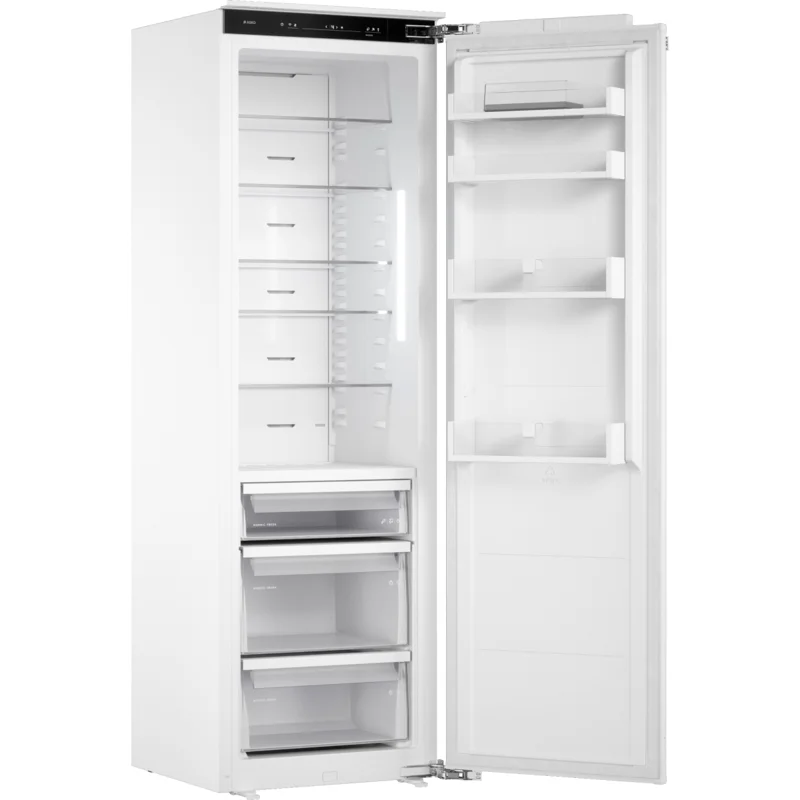 Встраиваемый холодильник Asko RBR276DND1 представляет собой современное и технологичное решение для обустройства кухонного пространства. Модель в белом цвете обладает общим объемом 296 л и органично сочетает в себе высокую функциональность и энергоэффективность, что делает ее идеальным выбором для требовательных пользователей. Интеллектуальное управление и подключение Холодильник оснащен модулем Wi-Fi и совместим с приложением ConnectLife.TRIR, что позволяет удаленно контролировать его работу и менять настройки. Удобная панель с цифровым дисплеем и индикацией температуры обеспечивает легкий и быстрый доступ ко всем функциям, включая звуковую и световую сигнализацию, которая предупреждает о повышении температуры или негерметично закрытой двери. Продуманная система хранения Внутреннее пространство холодильника организовано с помощью пяти съемных стеклянных полок, трех ящиков и четырех дверных балконов. Особого внимания заслуживает контейнер Multibox, предназначенный для хранения сыра и сливочного масла, а также ящики, установленные на плавно выдвигающихся телескопических направляющих, что обеспечивает легкий доступ ко всем продуктам. Технологии для свежести и климат-контроля Технология Opti Flow призвана создавать оптимальную циркуляцию потоков воздуха для равномерного охлаждения продуктов. В отсеке для овощей и фруктов автоматические поддерживается необходимый микроклимат за счет автоматического контроля уровня влажности, что продлевает свежесть содержимого. Степень охлаждения регулируется с помощью системы адаптивного контроля в зависимости от наполняемости пространства, что позволяет экономить энергию и обеспечивает стабильные условия хранения. Энергоэффективность и дополнительные возможности Холодильник отличается высоким классом энергопотребления A++, что означает значительную экономию электроэнергии при годовом потреблении около 107 кВт*ч. Прибор поддерживает режимы быстрого охлаждения SuperCool, PartyMode для приема гостей и SabbathMode для соблюдения традиций. Устройство работает с максимальным уровнем шума 35 дБ. Система No Frost исключает необходимость ручной разморозки. Двери можно перенавешивать на обе стороны.