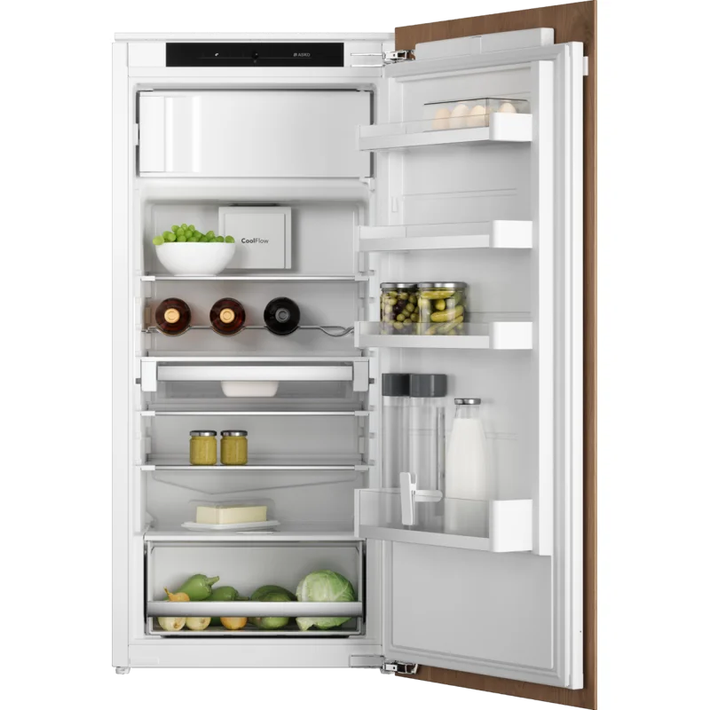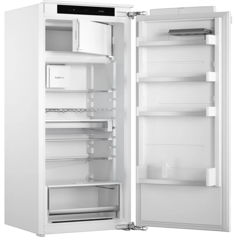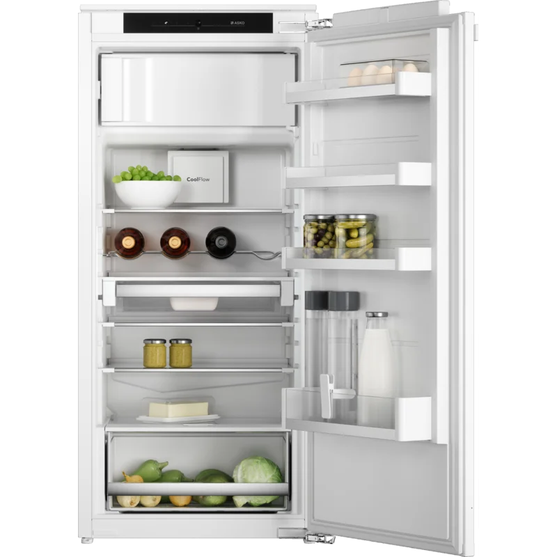 Компактный встраиваемый холодильник ASKO RFB31231EI предоставляет достаточно места для хранения продуктов и напитков. Холодильное отделение оснащено несколькими стеклянными полками, которые можно регулировать по высоте, что позволяет удобно размещать как крупные, так и мелкие продукты. Кроме того, в холодильнике предусмотрен ящик для хранения фруктов и овощей с ручной регулировкой влажности, который помогает сохранить их свежесть.
