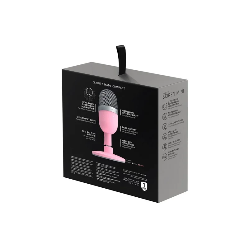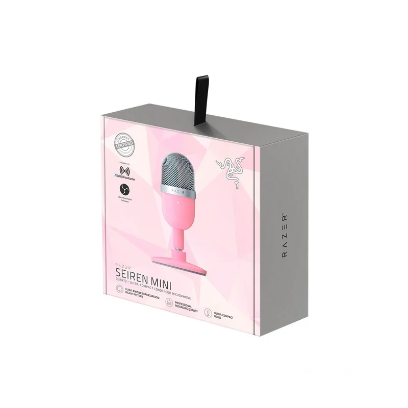 Razer Seiren Mini Quartz — это компактный USB-конденсаторный микрофон, созданный специально для цифрового контента. Он сочетает в себе профессиональное качество звука, стильный дизайн в нежной розовой расцветке и простоту подключения по принципу «включи и работай». Этот микрофон идеально подходит для стриминга, записи голоса, онлайн-обучения и игрового общения.